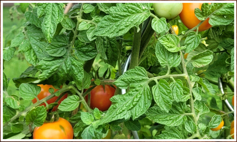 Und diese Sorten wachsen dann im heimischen Garten in gutem, tiefgründigen Mutterboden. Teils stehen die Pflanzen unter einem Dach, teils aber auch Freiland ohne Schutz. So können sie unter strahlendem Sonnenschein ausreifen und den besten Geschmack entwickeln.