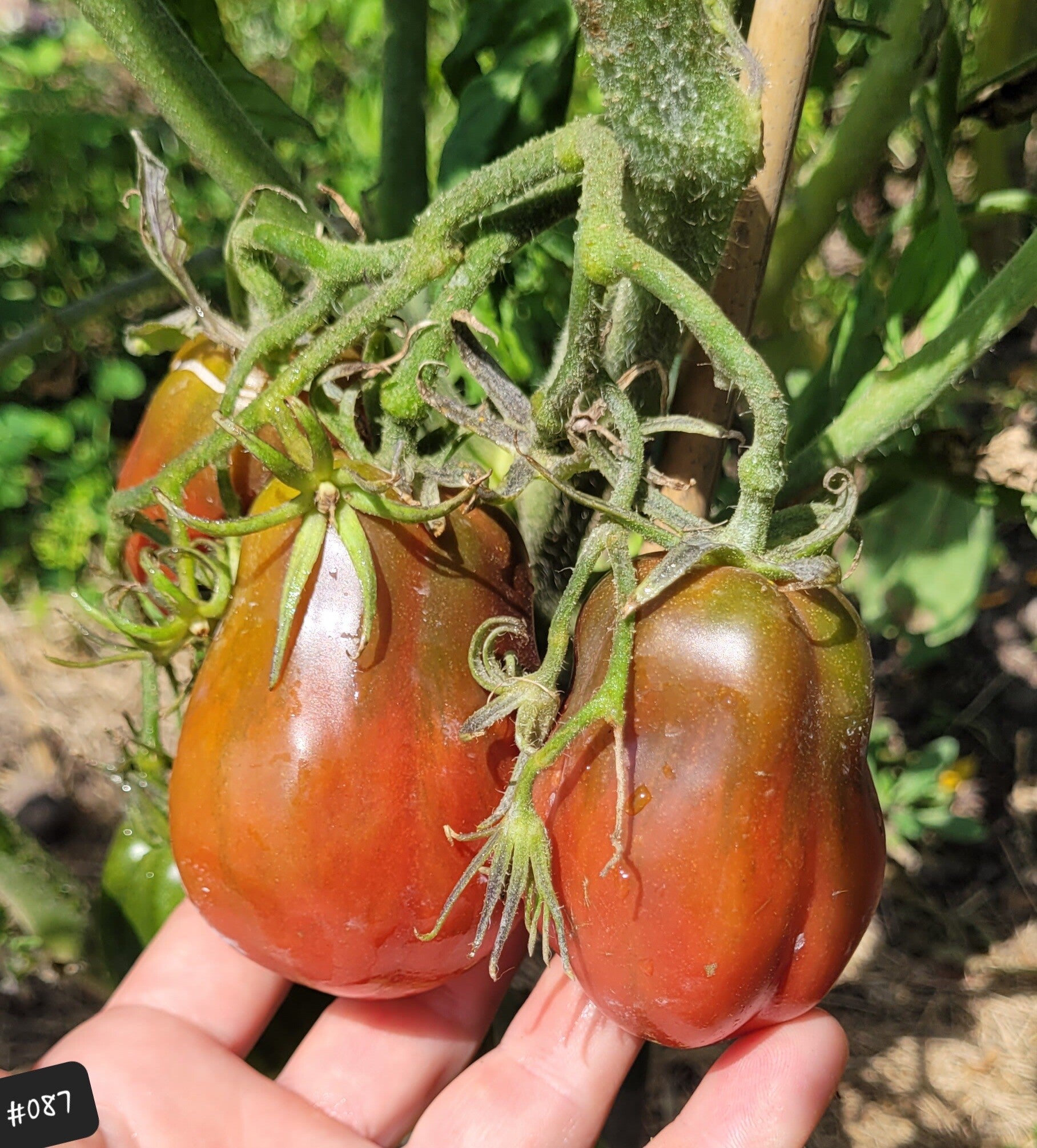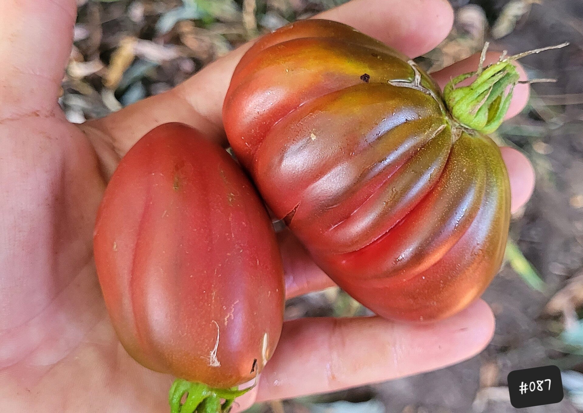 Bei mir hatten die Früchte ein Gewicht von 60-150 Gramm. Ich habe die Pflanze mehrtriebig wachsen lassen, sie blieb dann kompakt um die 100cm. Zweitriebig am Stab wird sie höher. Möglicherweise werden die Früchte dann auch größer. Der Ertrag ist gut. Die Pflanze wächst indeterminiert.