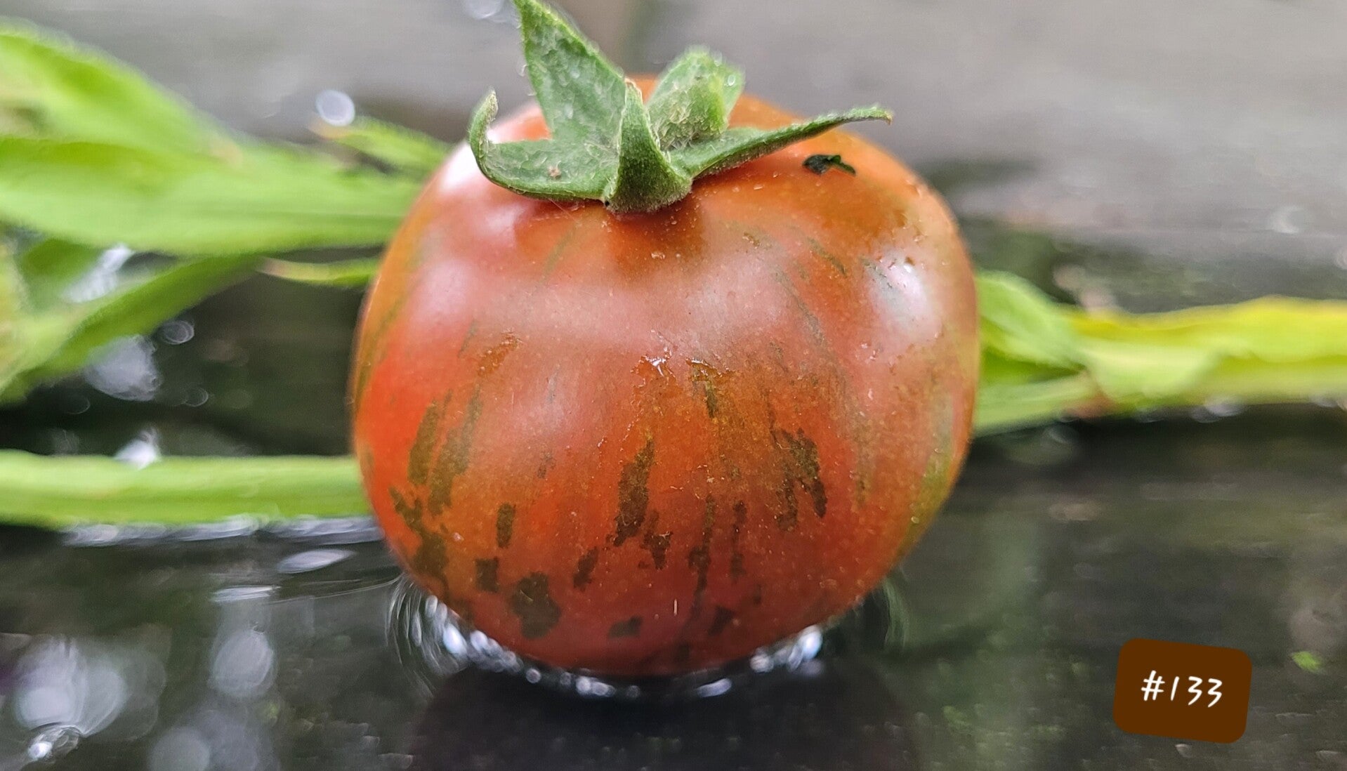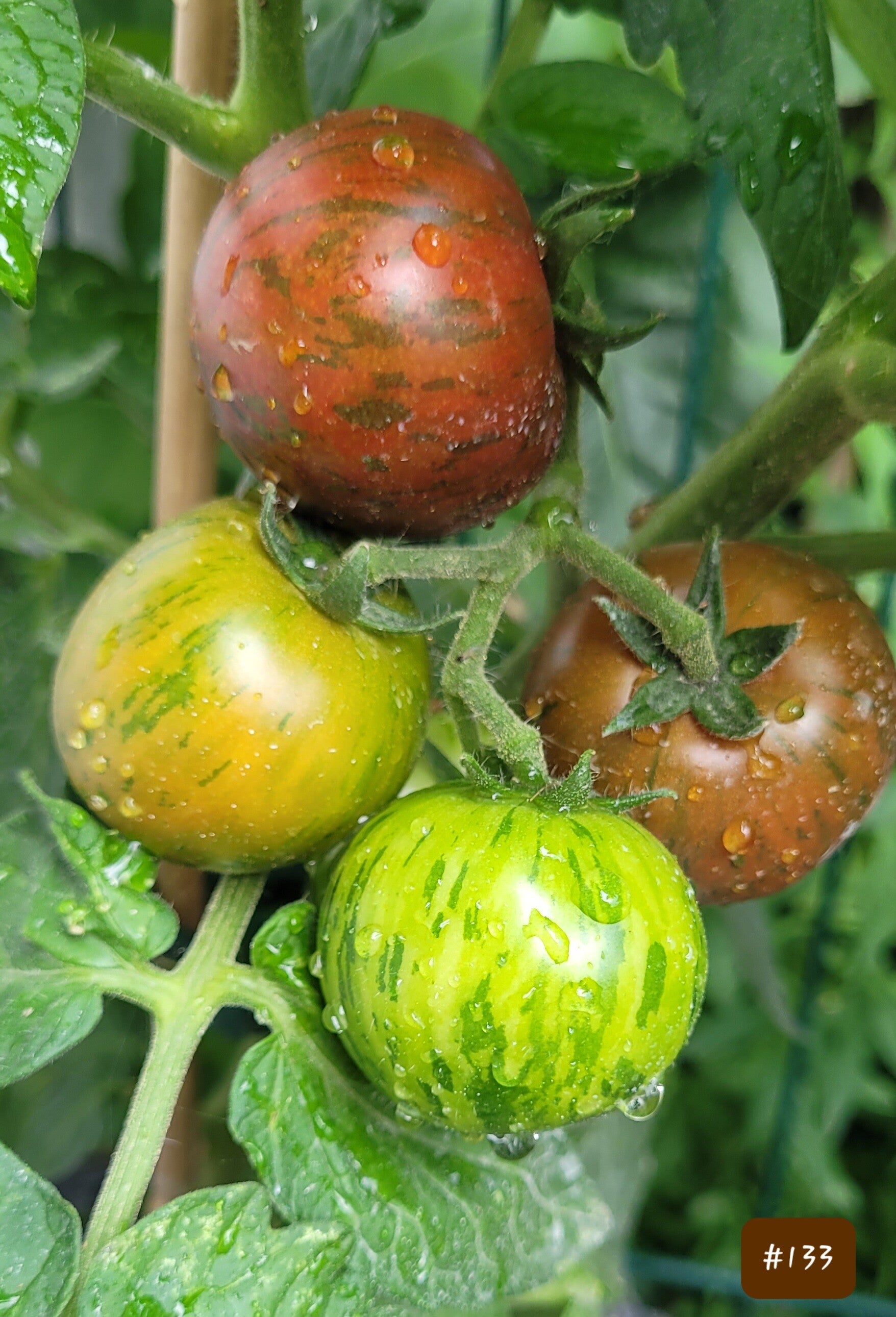 Sarandipity ist eine ertragreiche Tomate aus Dwarf Tomato Project. Die Tomaten sind mittelgroß, braun mit grünen Streifen, schmecken süß und ausgewogen würzig, etwas tropisch.