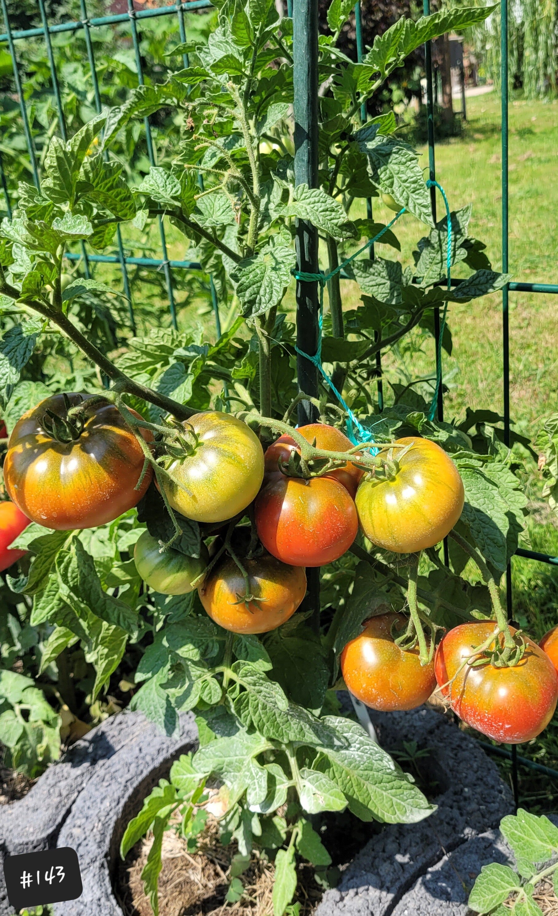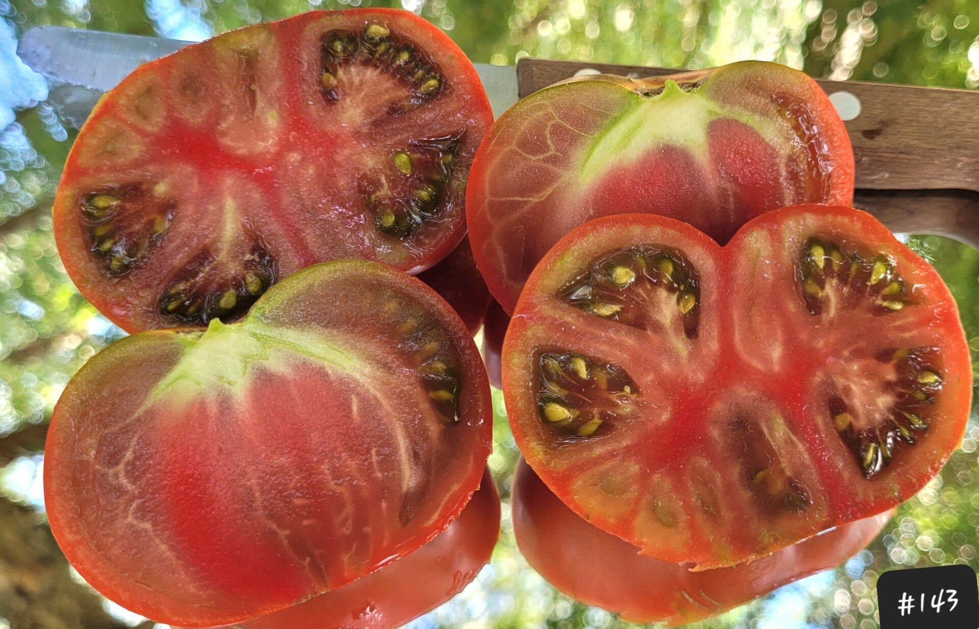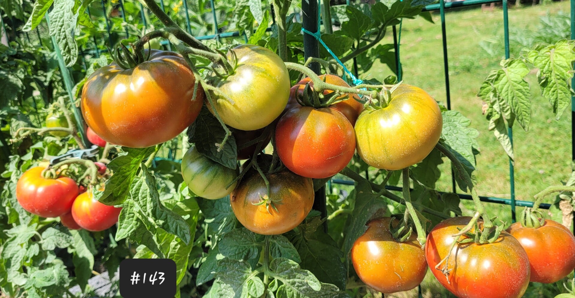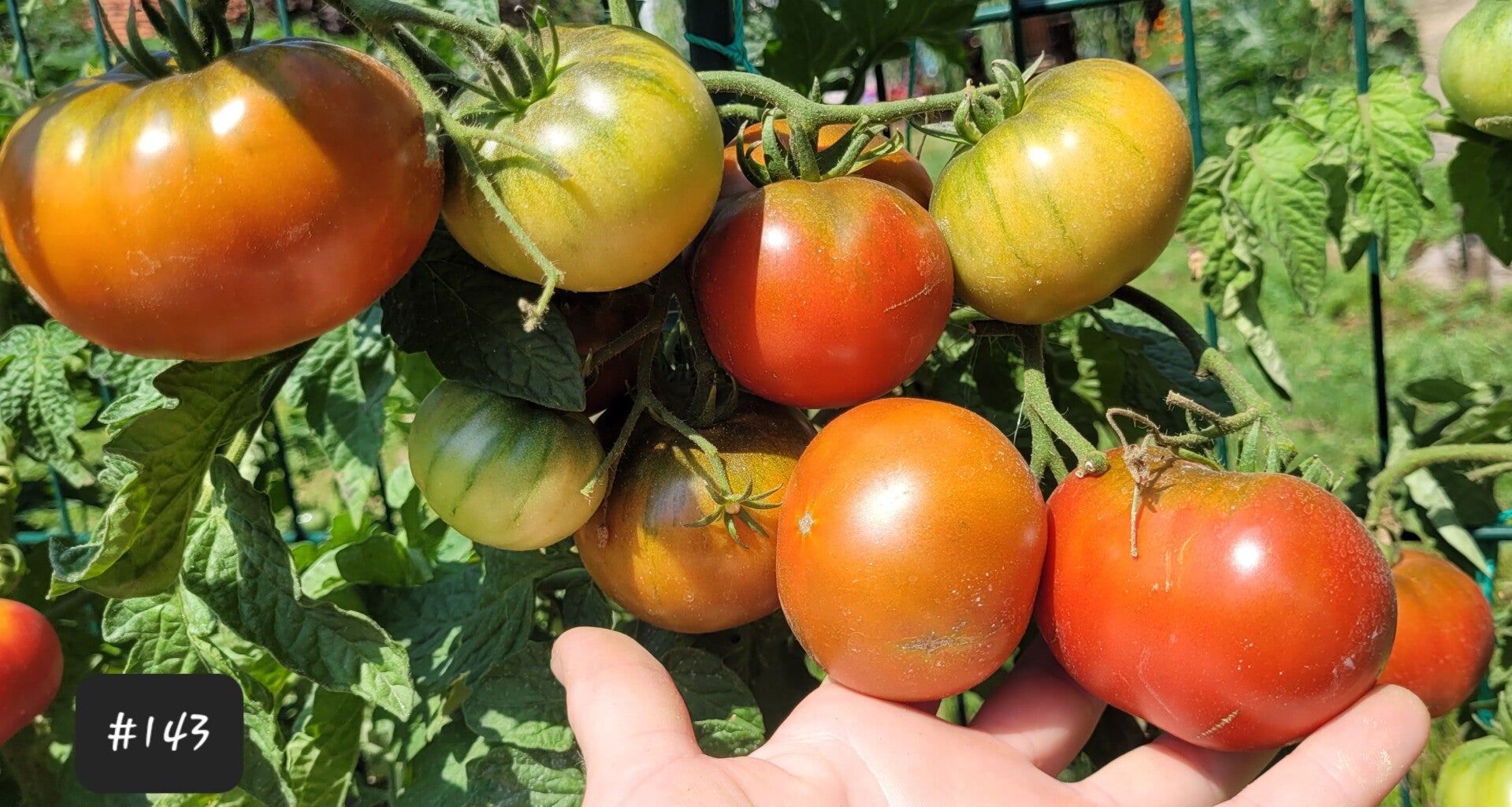 Eine sehr ertragreiche Dwarf-Tomate. Die rotbraunen Früchte mit grünlicher Schulter schmecken erfrischend fruchtig und haben eine angenehme Säure. Die Pflanze ist sehr kräftig und sollte nicht ausgegeizt werden. Die hat große Rispen und trägt zuverlässig.