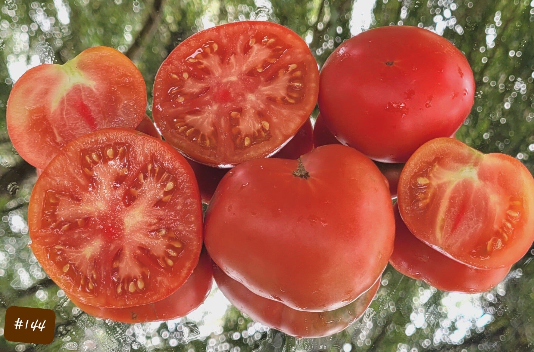 Eine glänzend pinkfarbene kleinere Fleischtomate, teilweise mit grünen Schultern, die sehr saftig und trotzdem platzfest ist. Die Früchte schmecken harmonisch,frisch, mild mit einer leichten Säure.