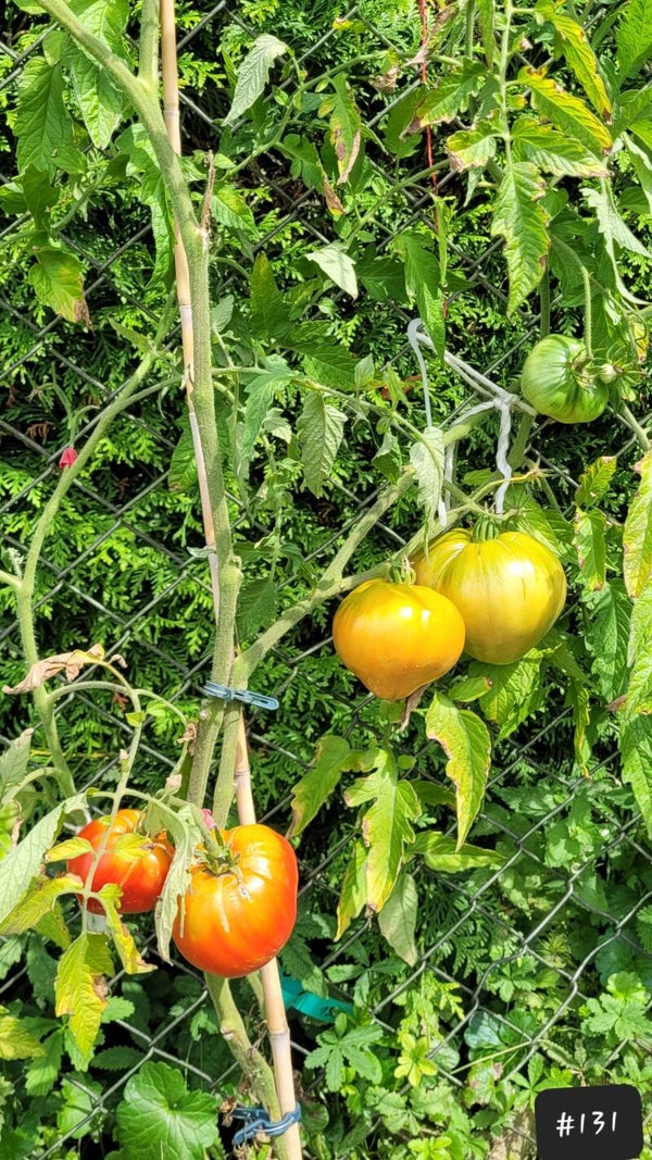 Die Haussorte von der sogenannten Tante Katica aus Kroation ist eine tolle rote Fleischtomate mit klassischem altem Tomatenaroma. Sie ist sehr fleischig und schmeckt urig kräftig tomatig. Die Pflanze entwickelt unterschiedliche Früchte von flachrund bis herzförmig, die noch dazu stark im Gewicht variieren. Es sollen wohl auch Früchte bis 1kg möglich sein.