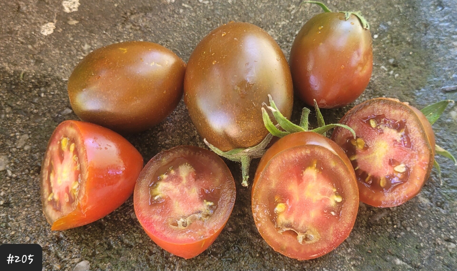 Eine knackige Frucht mit dicken Wänden, süß, mit einer satten weinroten Farbe im Inneren des Fruchtfleisches. Sie schmeckt sehr gut und ist aromatisch. Die Pflanze fällt durch die Farbe der unreifen Früchte ins Auge. Diese sind vollkommen uniform dunkelgrün. Reif werden sie von dunkelbraun bis hin zu burgunderrot. Sie könnte noch etwas instabil sein. Sie schmecken würzig und aromatisch, mit einer feinen Süße.