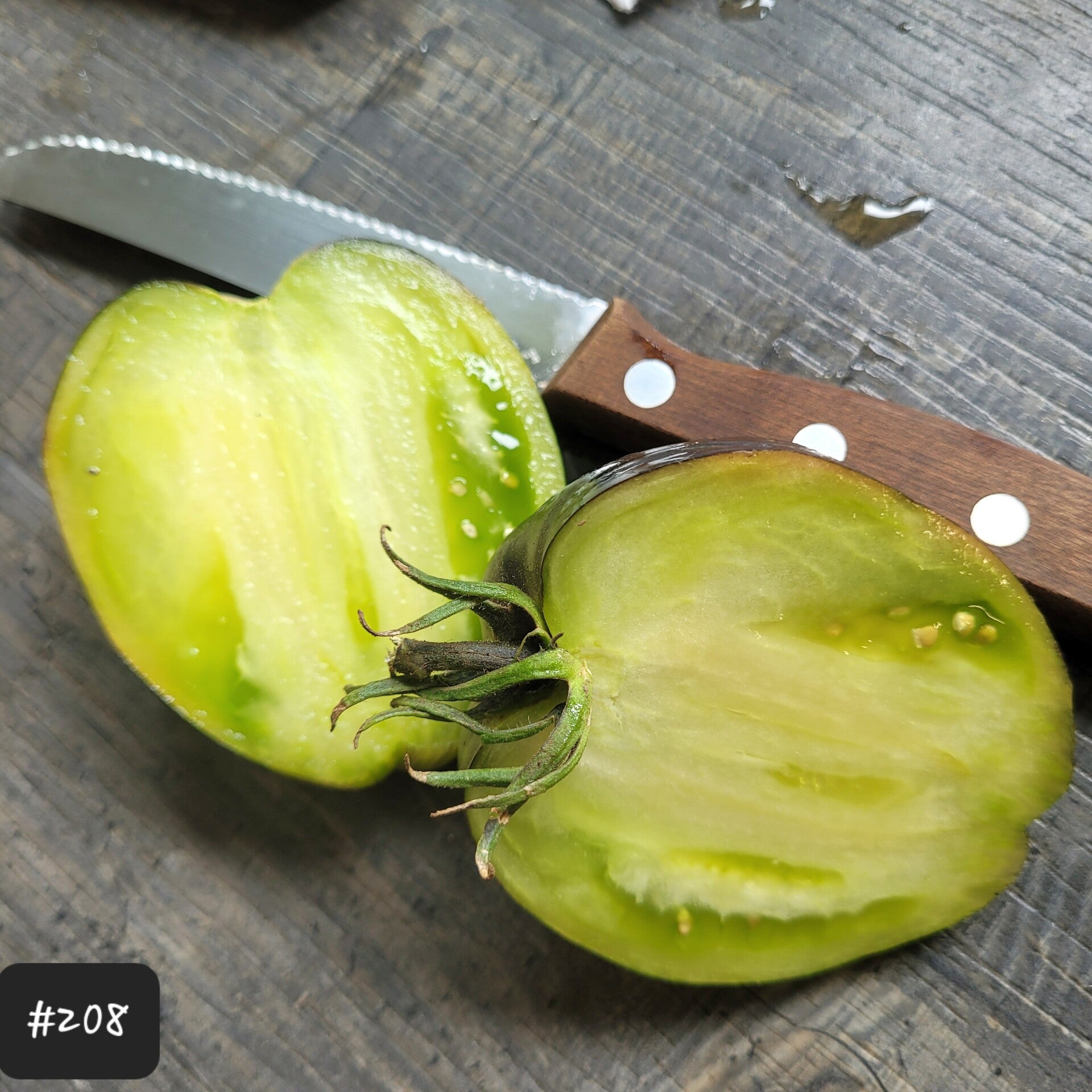 Von der Züchterin Sofia Saakova. Eine smaragdfarbene Frucht in Herzform mit dunklen Steifen. Bei voller Reife bekommt sie einen Gelbton und kann auch eine rosa Spitze entwickeln. Das Fleisch ist smaragdgrün. Sie schmeckt süß und aromatisch und ist sehr saftig.