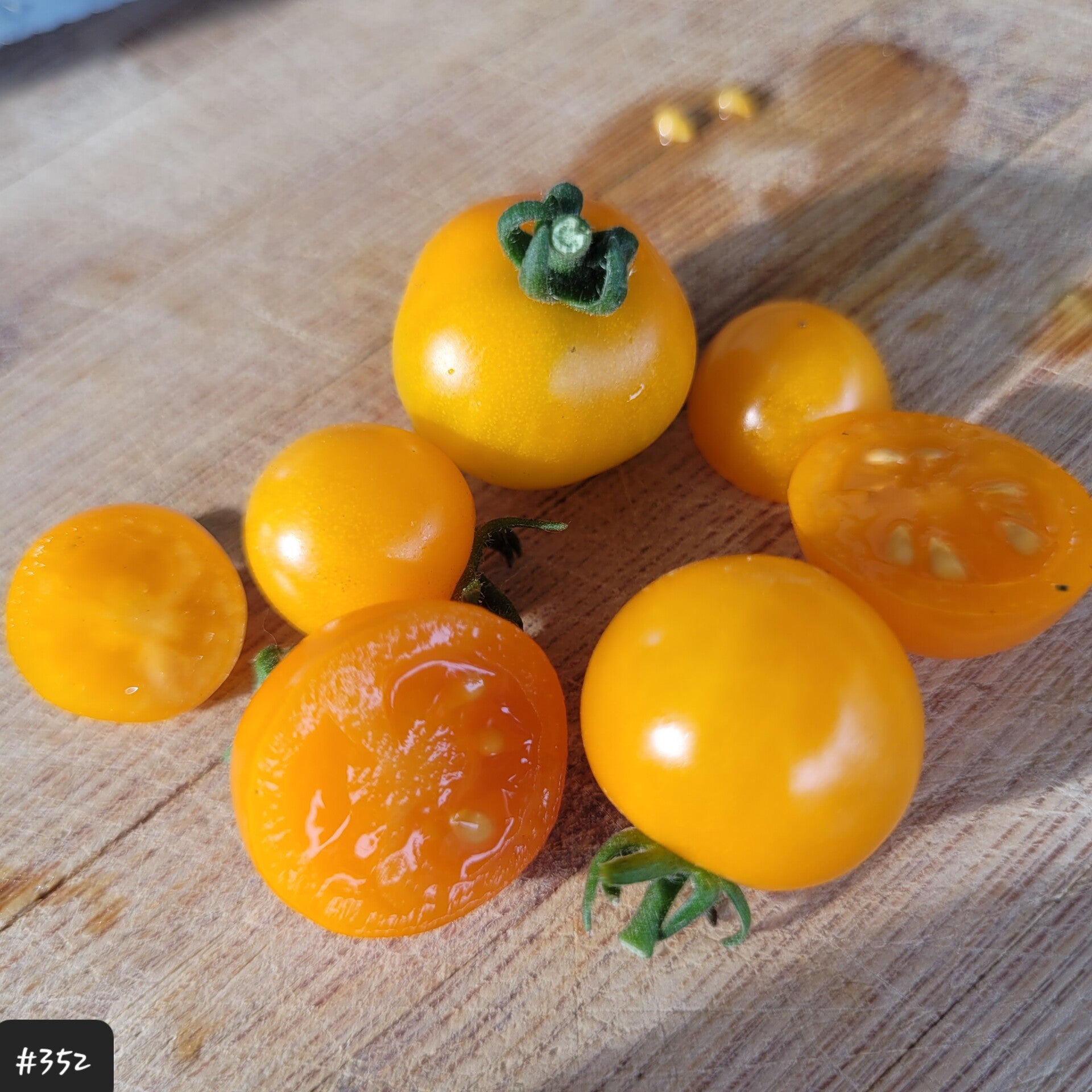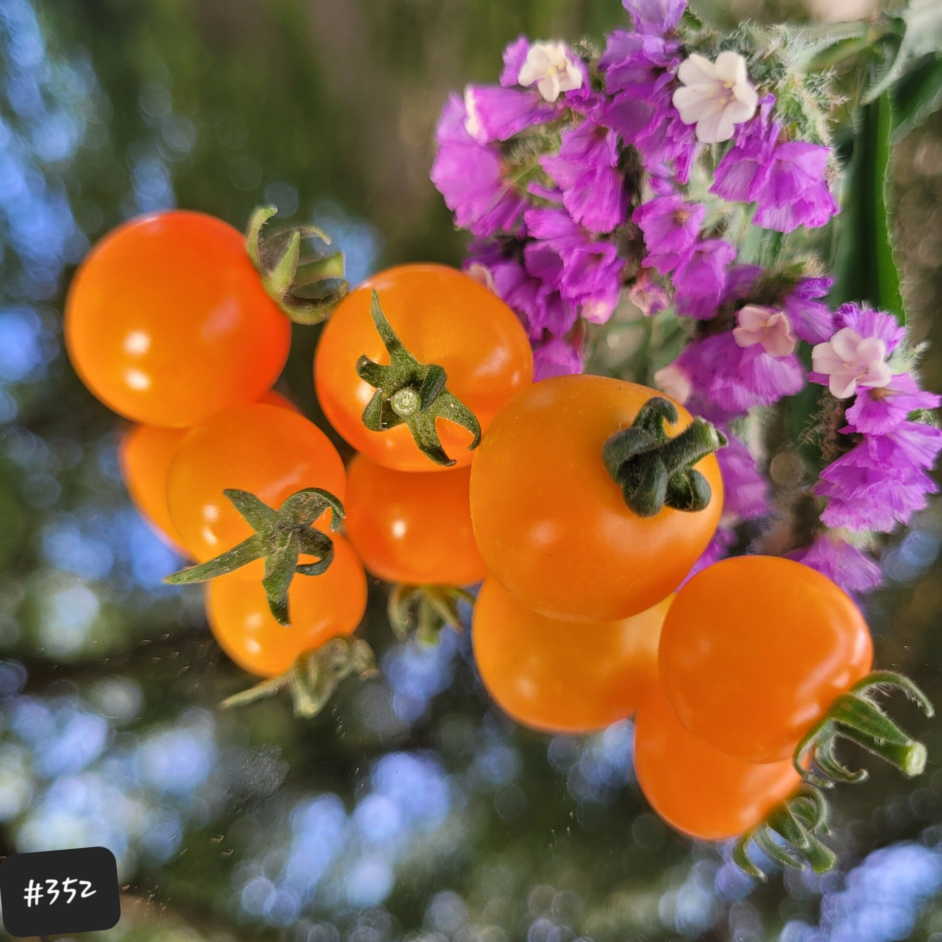 "Pflück und sei glücklich" ... der Name ist Programm. Diese kleine Zwerg-Buschtomate trägt kleine runde orangene Früchte, die um die 5g wiegen. Diese LEckerbissen sind saftig, ausgewogen im Geschmack und sie haben eine feste Schale.