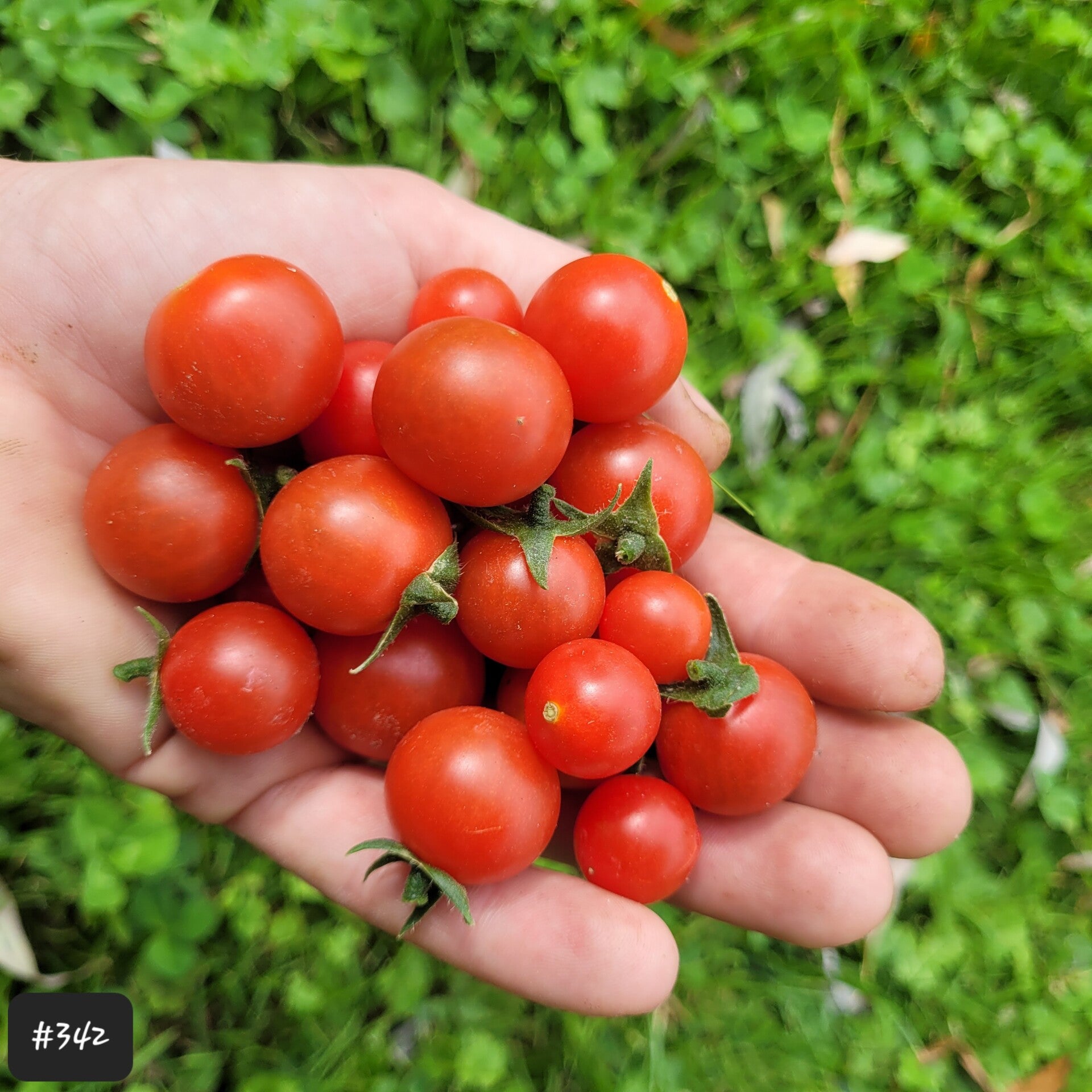 Die ertragsreichste Zwerg-Buschtomate in meinem Garten. Was für ein Blickfang, ein echter Massenträger. Der Busch wird um die 50cm hoch und entwickelt zahlreiche kräftige Triebe. An jedem Trieb wiederum viele Büschel und Rispen mit den leckeren kleinen Cocktail-Tomaten. Sie ist eine sehr frühe Sorte und hat eine lange Erntephase.