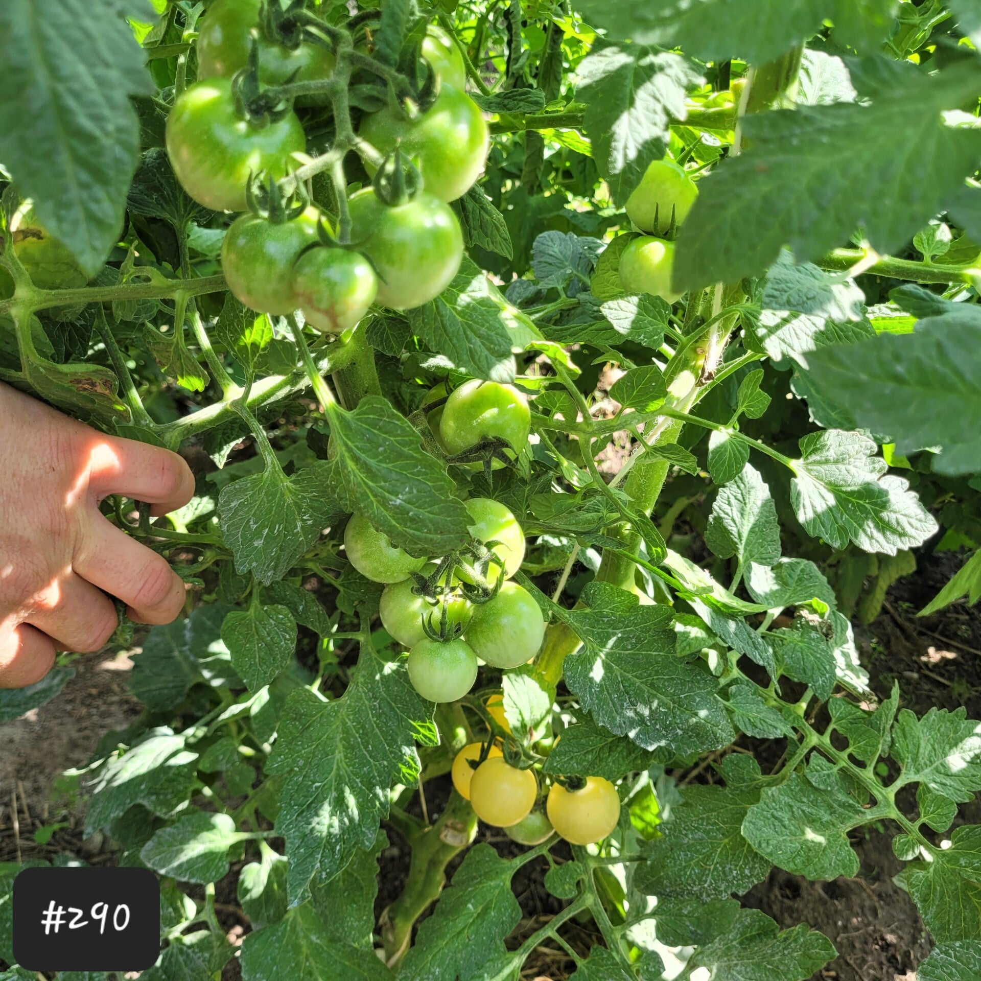 An einer sehr wüchsigen kräftigen Pflanze wachsen viele schöne Rispen zu je 6-10 Früchten. Die Tomaten sind weiß bis hellgelb,rund, sehr saftig und sie schmecken fruchtig mit einer milden Säure.