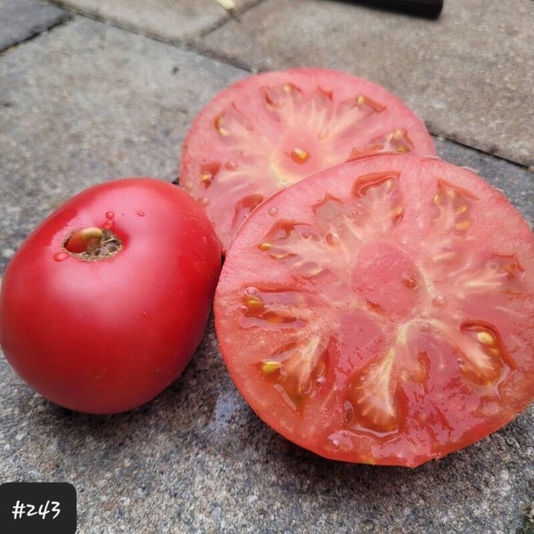 Eine große Fleischtomate, flachrund und leicht gerippt. Sie hat tiefrotes dichtes Fruchtfleisch, ist saftig, fleischig und aromatisch ausgewogen. Sie eignet sich gut als Soßentomaten, sieht aber auch als Brotbelag sehr gut aus.