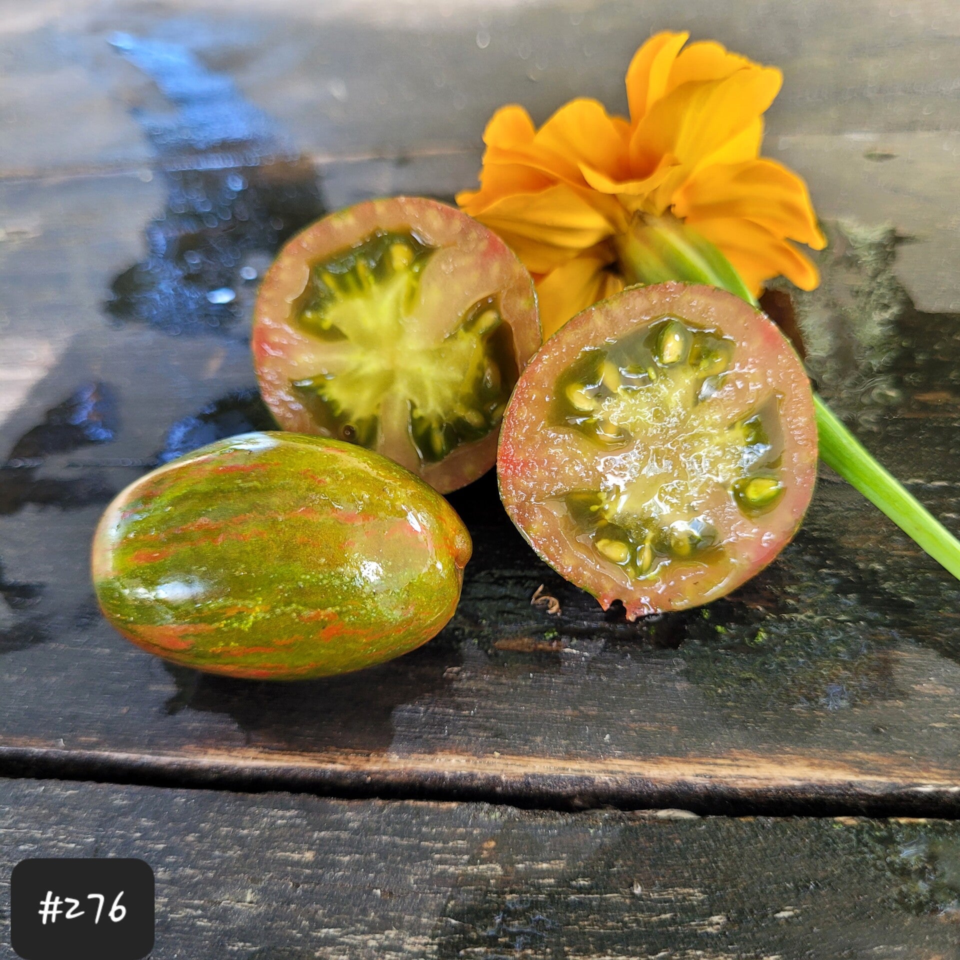 Eine weitere tolle Sorte von Anna Jankowski. Die Kozula 132 - Zielone ist eine Salattomate mit eierförmigen Früchten. Diese sind rot-dunkelgrün gestreift, haben dunkles Fruchtfleisch mit einem Grünschimmer und sie sind sehr saftig.