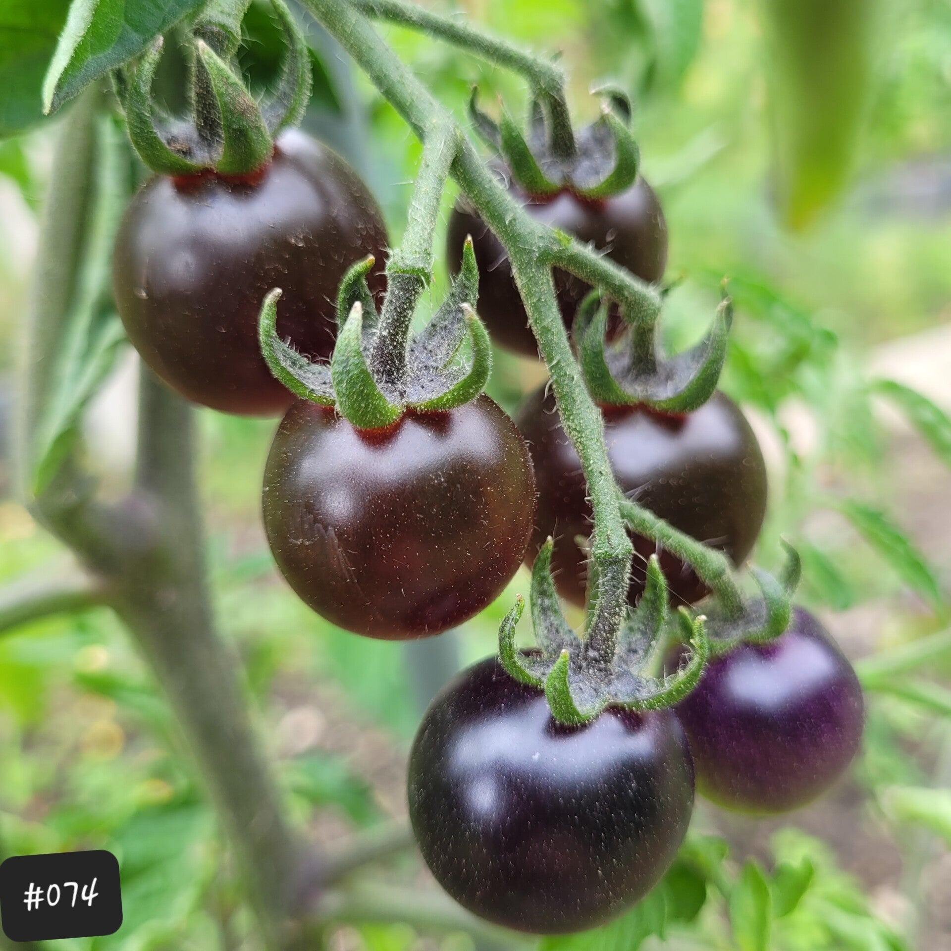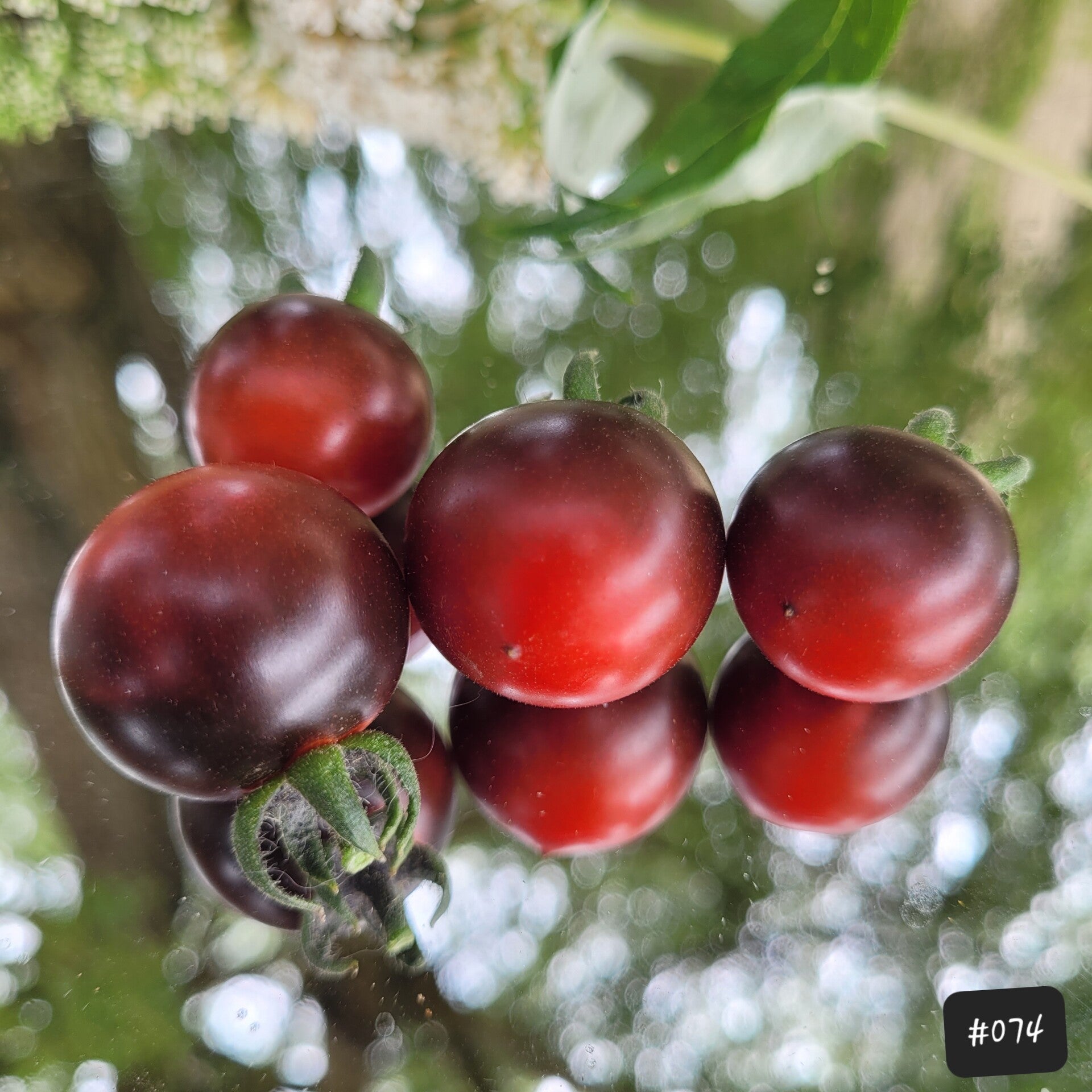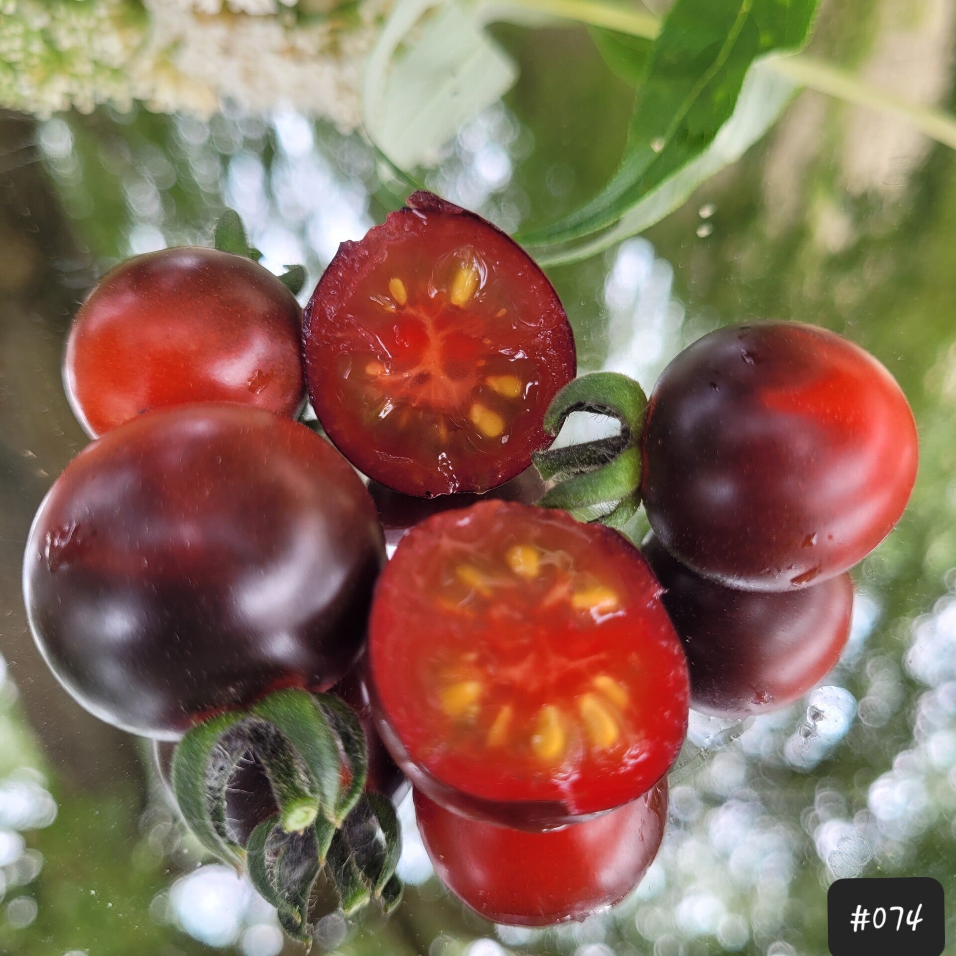Eine Cherrytomate, die je nach Sonneneinstrahlung fast gänzlich schwarz sein kann. Das liegt am hohen Anthocyanin-Gehalt, dem man einen sehr gesunden Wert nachsagt.