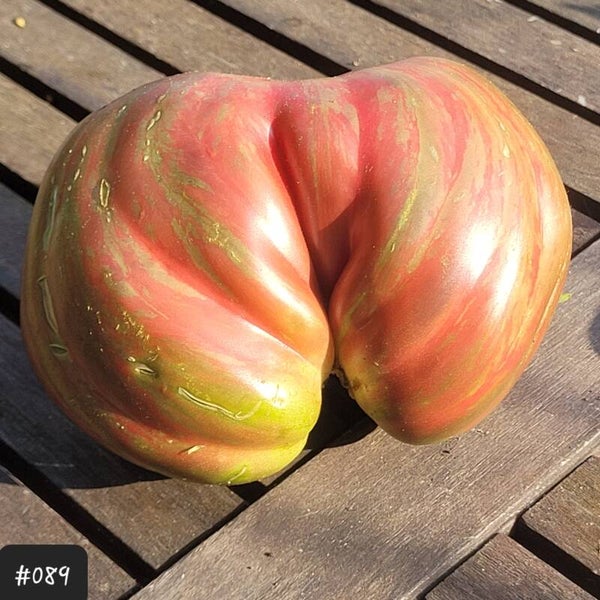 Dunkelrote Fleischtomaten mit metallisch grünen Steifen. Das Fruchtfleisch ist dunkelrot-bräunlich, schmeckt sehr gut, ausgewogen und aromatisch und hat kaum Gallerte. Daher eigent sich die Sorte neben dem Frischverzehr auch prima zur Herstellung von Soßen.