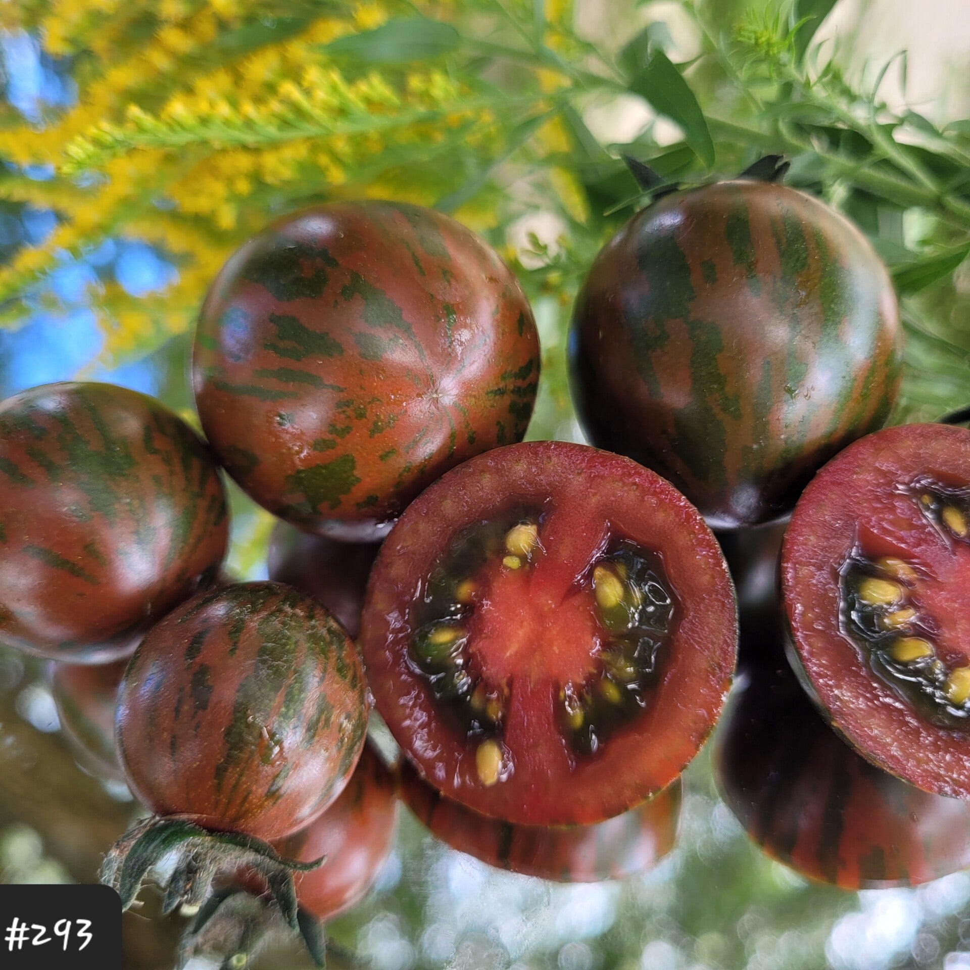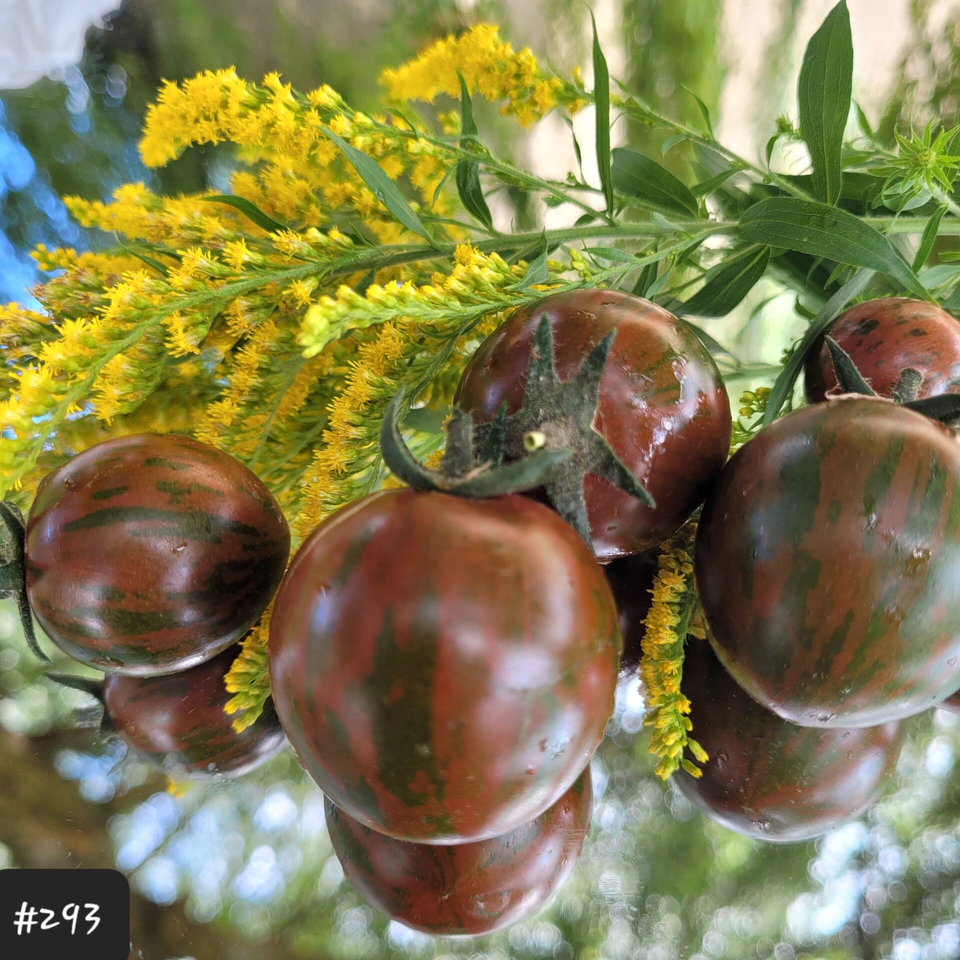Die dunkelroten Cocktail-Tomaten haben dunkelgrüne Streifen, sind rund und schnitt- und platzfest. Das Fruchtfleisch ist intensiv dunkelrot gefärbt. Und intensiv ist auch der Gaschmack.