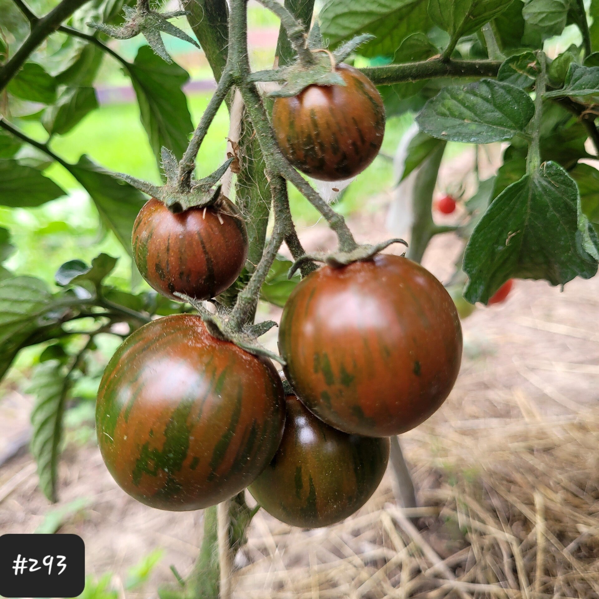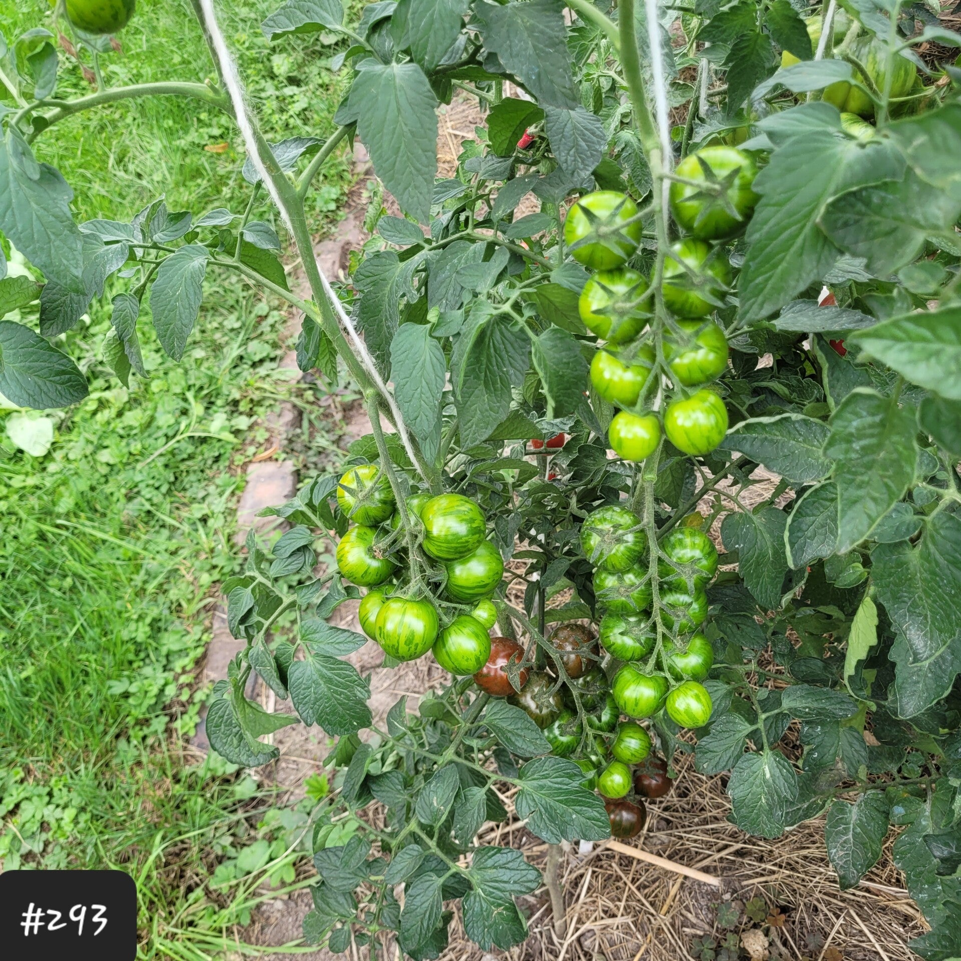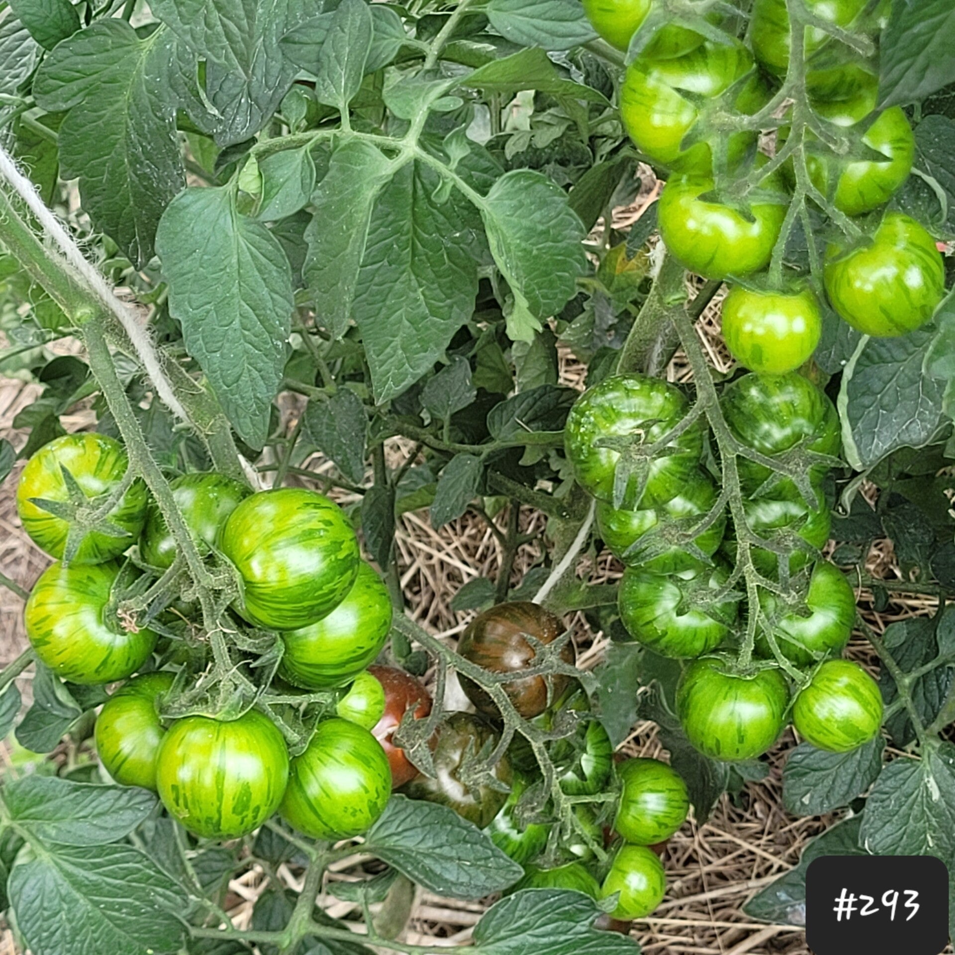 Die Tomaten sind sehr knackig und haben eine feste Schale. Sie wachsen an einer kräftigen Pflanze an vielen Rispen zu je 8-10 Früchten. Die Pflanze ist bei mir 2triebig an die 200cm hoch geworden, und hat kaltes und heißes Wetter gut verkraftet.