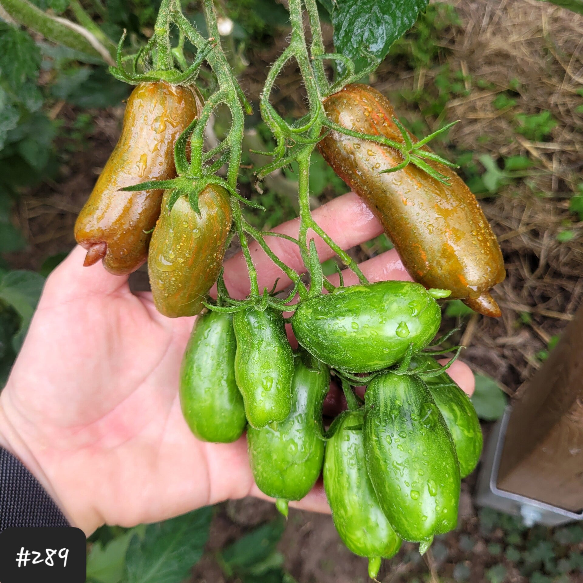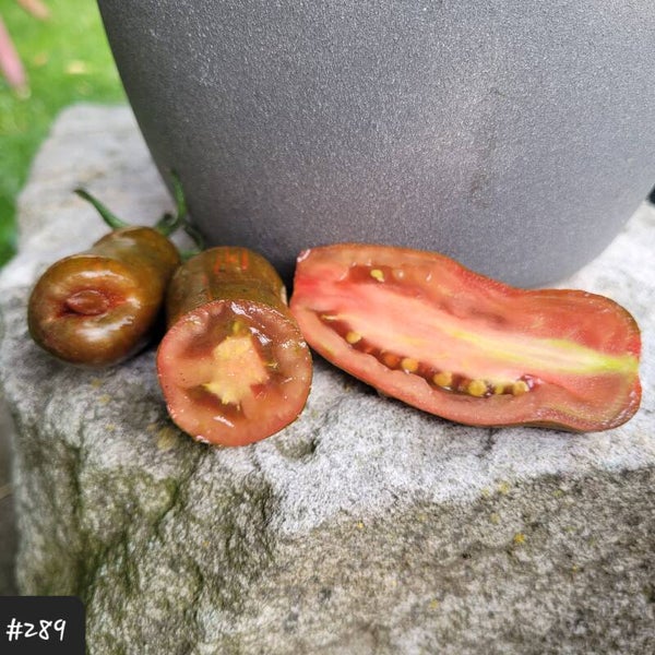 Eine wirklich außergewöhnliche Sorte in einem ganz besonderen Look. Die Tomaten sind länglich und haben eine kleine Spitze. Sie sind manchmal doch recht unrund, was sie irgendwie ganz besonders charismatisch macht.