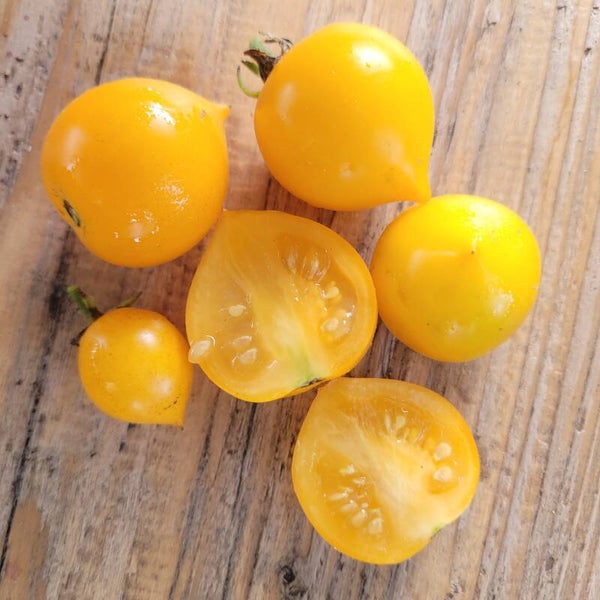 Eine kleine Zwerg-Buschtomate, die herzförmige gelbe-orange Früchte entwickelt. Diese Herzen schmecken fruchtig und sind saftig. Sie sehen wunderbar dekorativ aus.