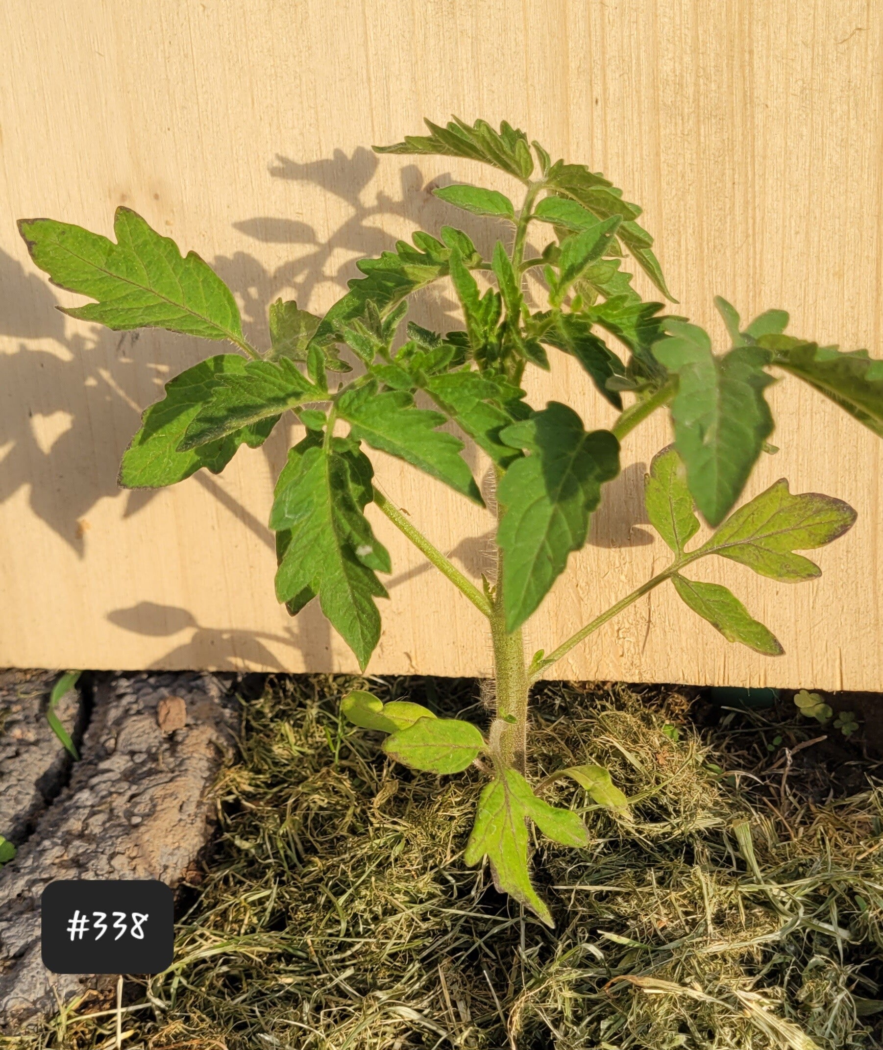 Der kleine Busch sollte nicht ausgegeizt werden. Einzelne Triebe werden durch die Tomaten nach unten gezogen und bedürfen etwas Befestigung.