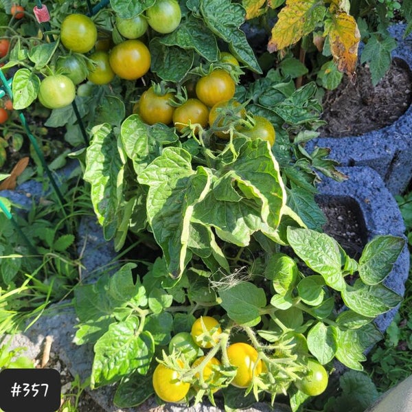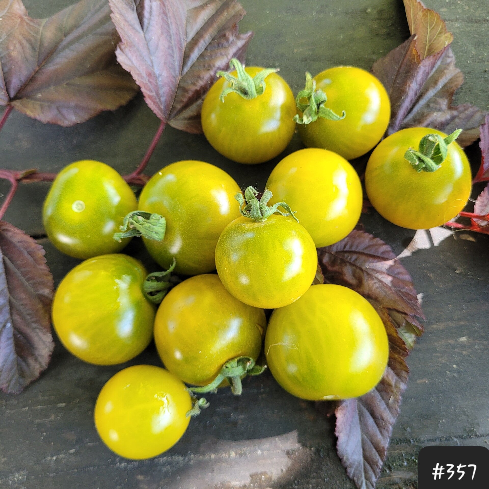 Diese Cherry-Tomaten sind gelblich-senffarben, auf der Oberseite mit einem dunkelgrünen Ton, das Fruchtfleisch gelb-grünlich. Sie haben eine weiche Schale und sind trotzdem recht platzfest. Das Fruchtfleisch ist saftig und weich und zergeht auf der Zunge. Es schmeck fruchtig, ausgewogen süß-säuerlich.