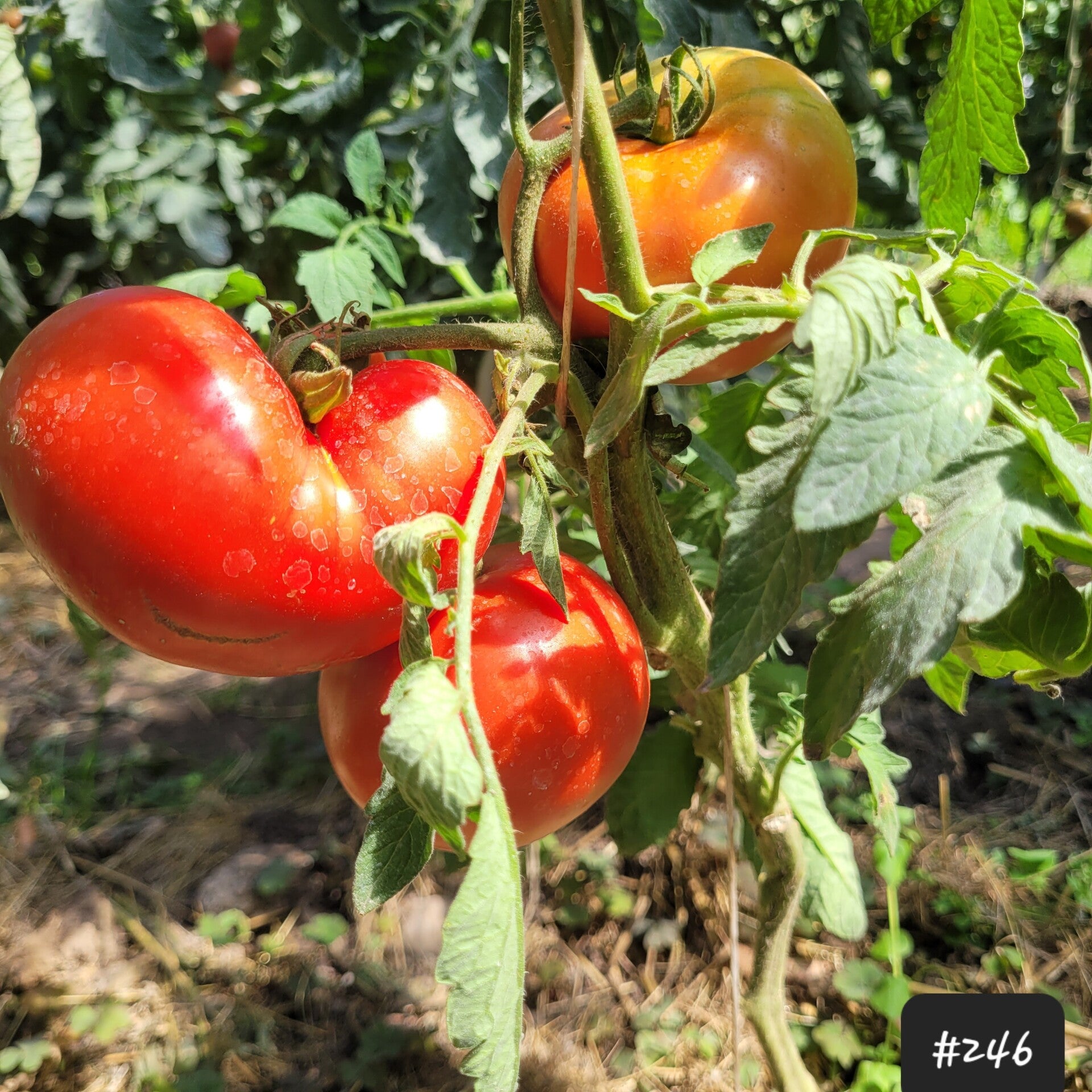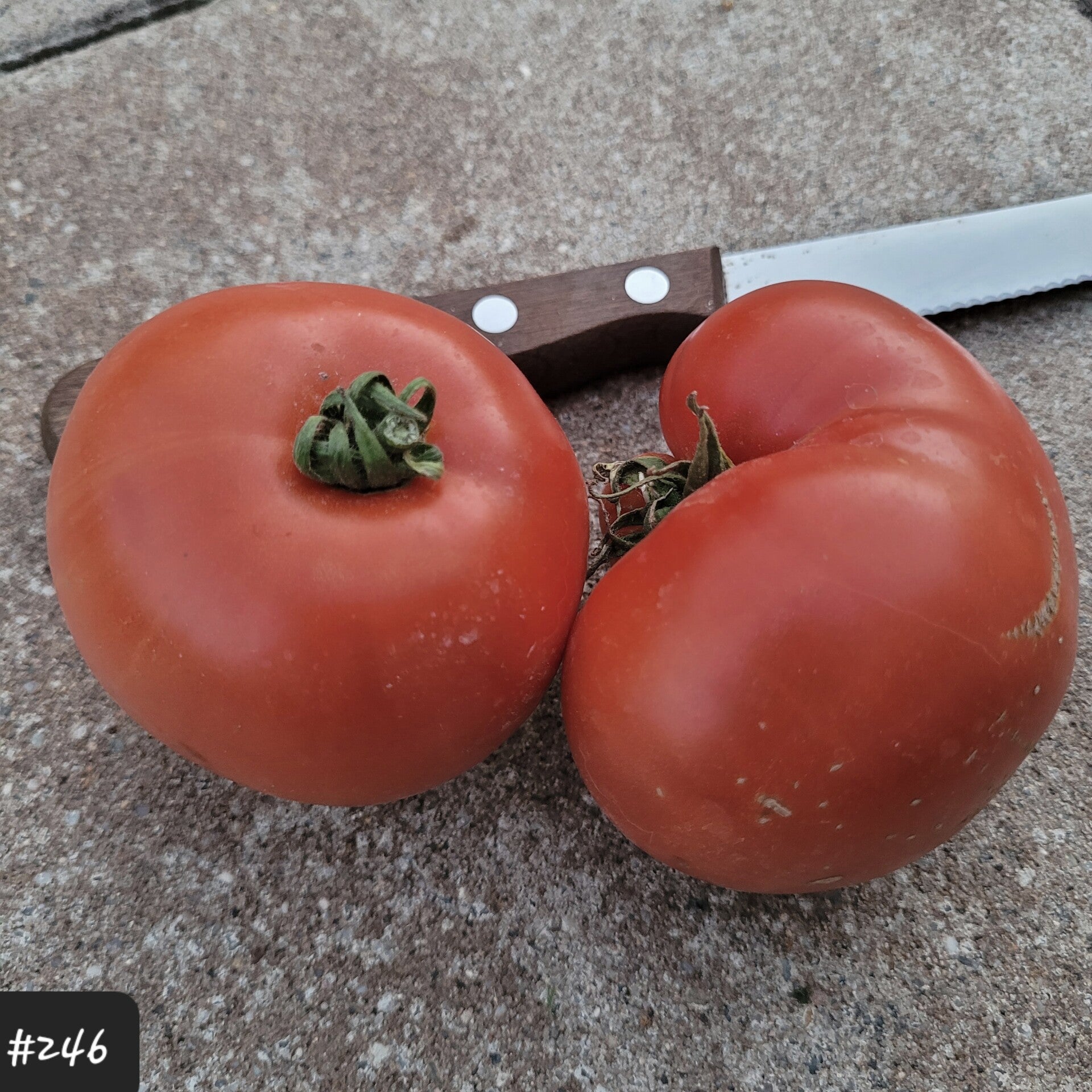 Eine schön große rote Fleischtomate, flachrund und manchmal leicht gerippt. Sie wurde in Sibirien speziell für kältere Regionen und kurze warme Perioden gezüchtet.