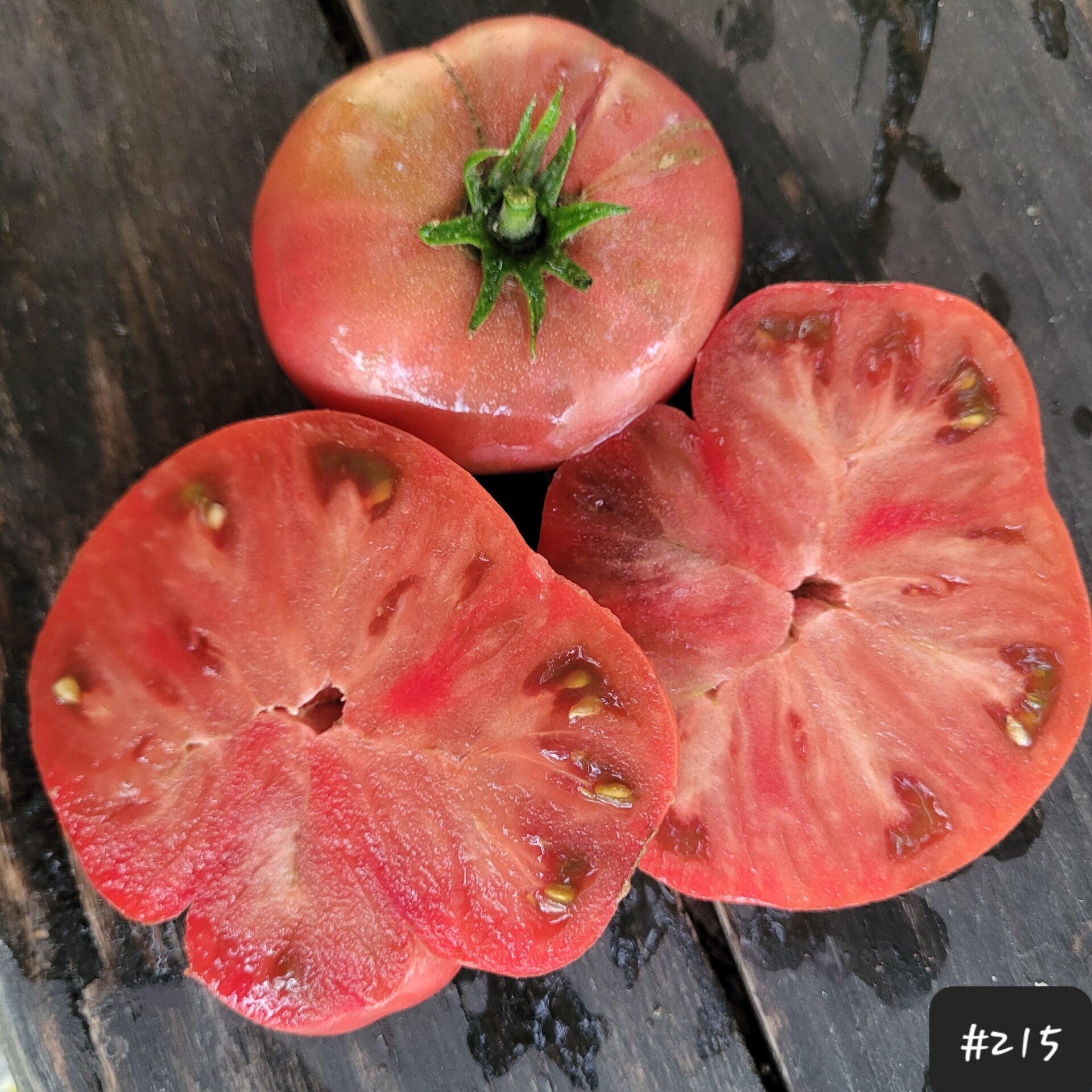 Eine tiefrote Fleischtomate, flachrund und gerippt. Das Fruchtfleisch ist dich, fest und dennoch saftig. Es hat eine sehr gute Konsistenz. Sie schmeckt ausgewogen und aromatisch. Die Haut platz auch bei nasserem Wetter nicht.