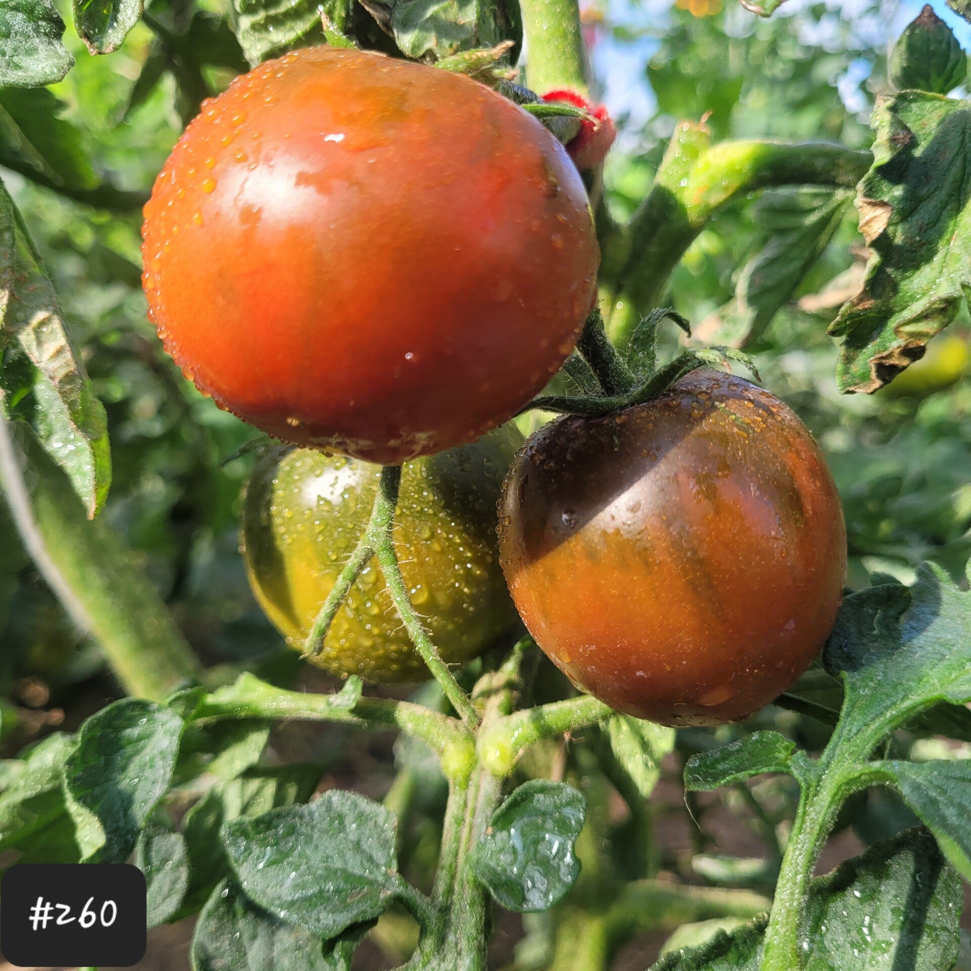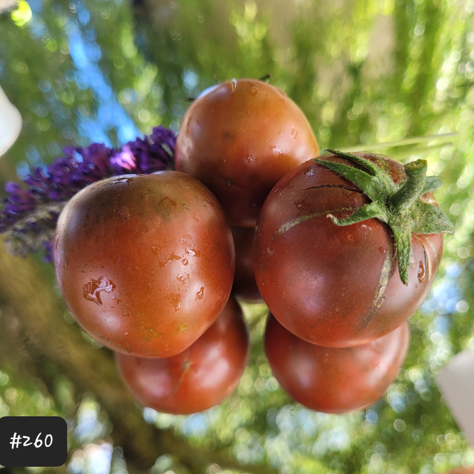 Nyagous, oder auch Niagus, ist eine runde oder ganz leicht ovale rotbraune Tomate mit dunkelgrüner Schulter. Sie ist eine historische Sorte aus Russland, sie ist für kältere Regionen sehr gut geeignet ist. Doch auch in unserem heißen Sommer kam sie bestens zurecht und hat keine Schwächen gezeigt.