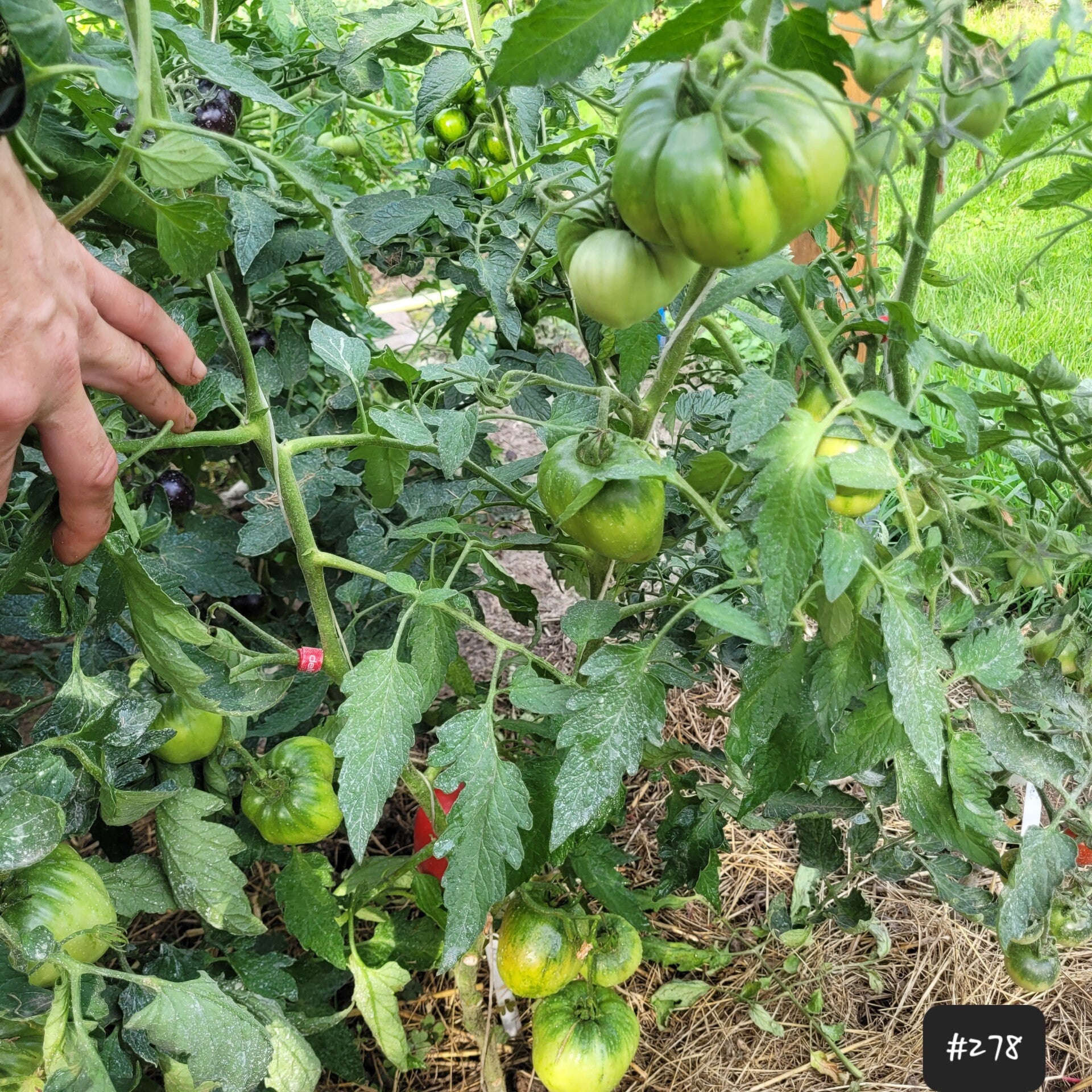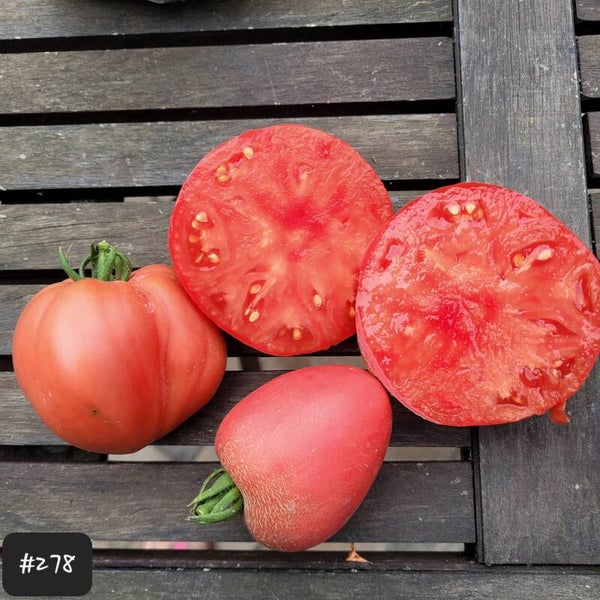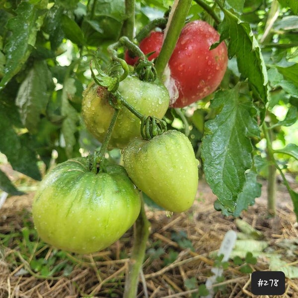 Sie schmecken fruchtig (vielleicht sogar leicht himbeerig?) und haben kaum Säure. Die Früchte wachsen an einer hohen Pflanze in Clustern von 3-6 Früchten. Die Pflanze wächst indeterminiert, hat reguläres Tomatenlaub und entwickelt bis zum späten Sommer fortlaufend Früchte.