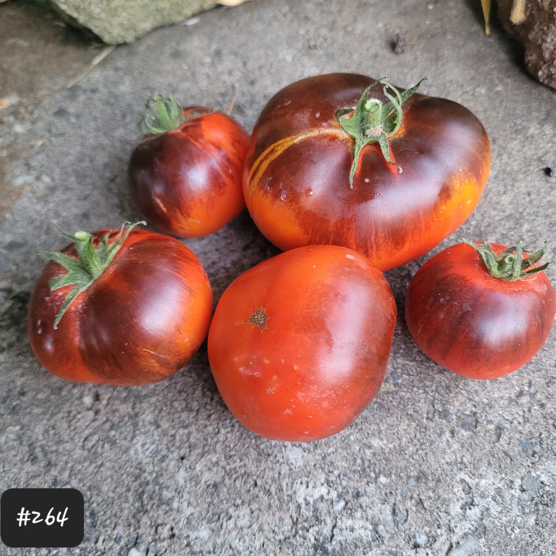Diese superschöne Fleischtomate ist flachrund und manchmal leicht gerippt. Sie hat eine Antho-Haube, das heißt die Oberseite und die von der Sonne direkt bestrahlten Stellen können sehr dunkel sein, fast schwarz.