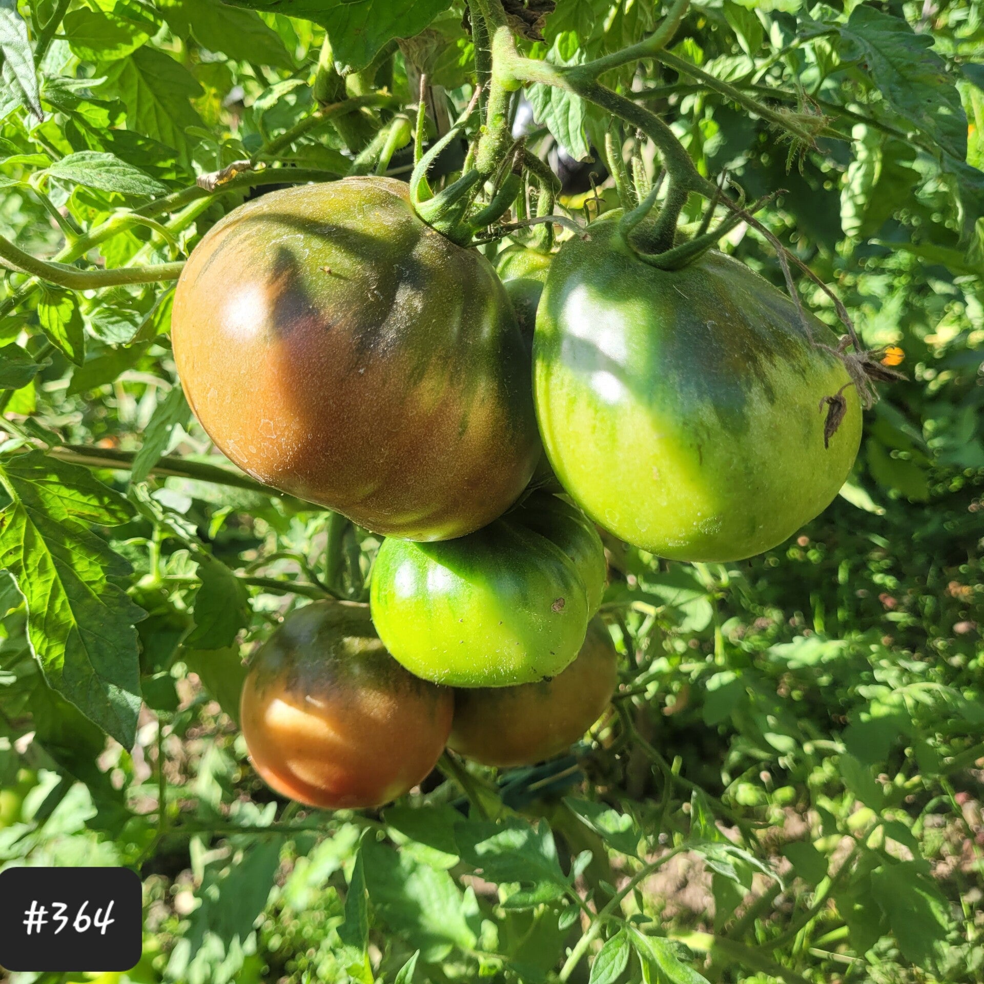 Das "Antike Herz von Ravenna" produziert viele kräftig braune beutelförmige Fleischtomaten. Diese haben eine dunkelgrüne Haube.
