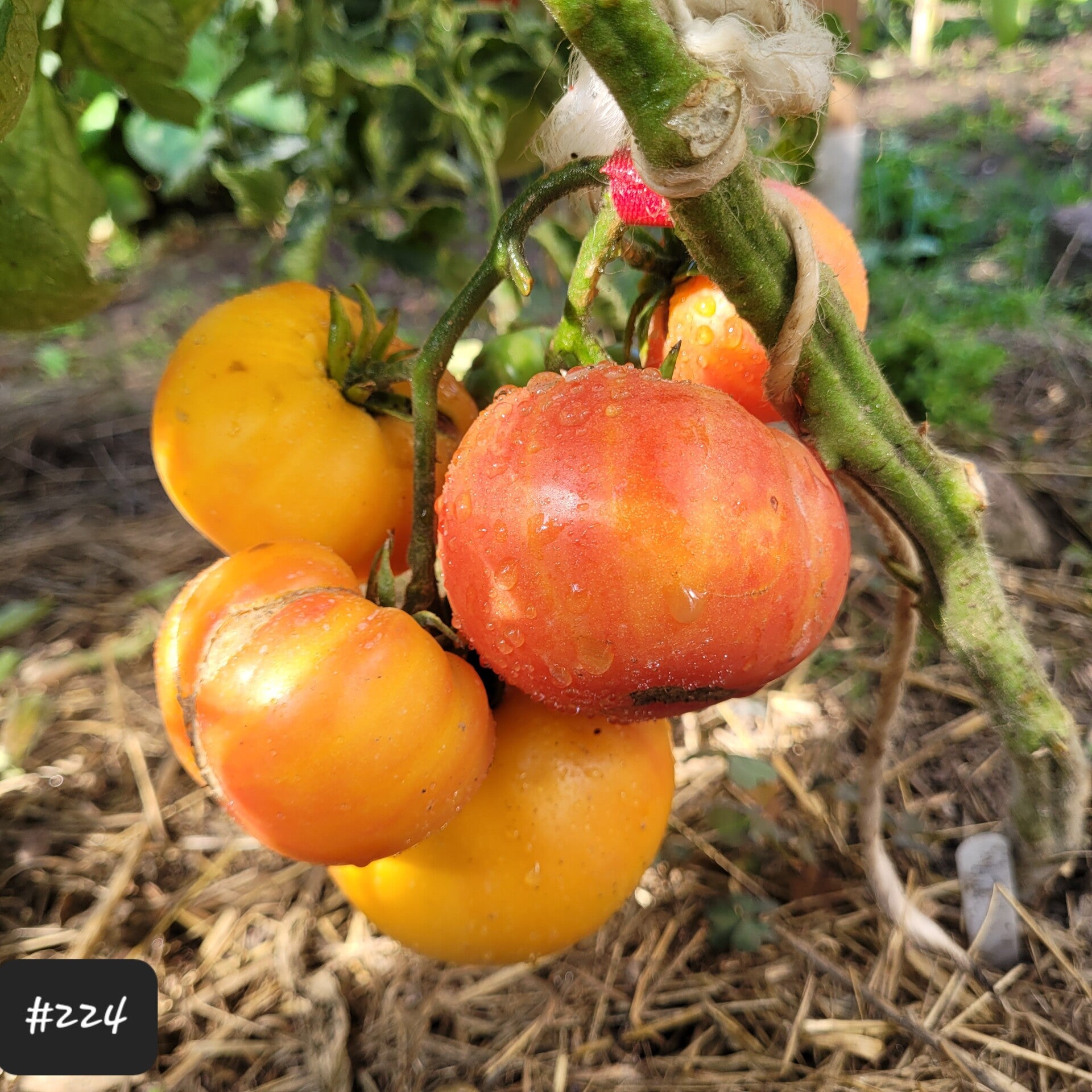 Die Pflanze mit den großen kräftigen Tomatenblättern wächst gut in die Höhe. An ihr wachsen Cluster von 3-6 Früchten, die teilweise ganz schön schwer werden können und zusätzlich angebunden werden sollten.