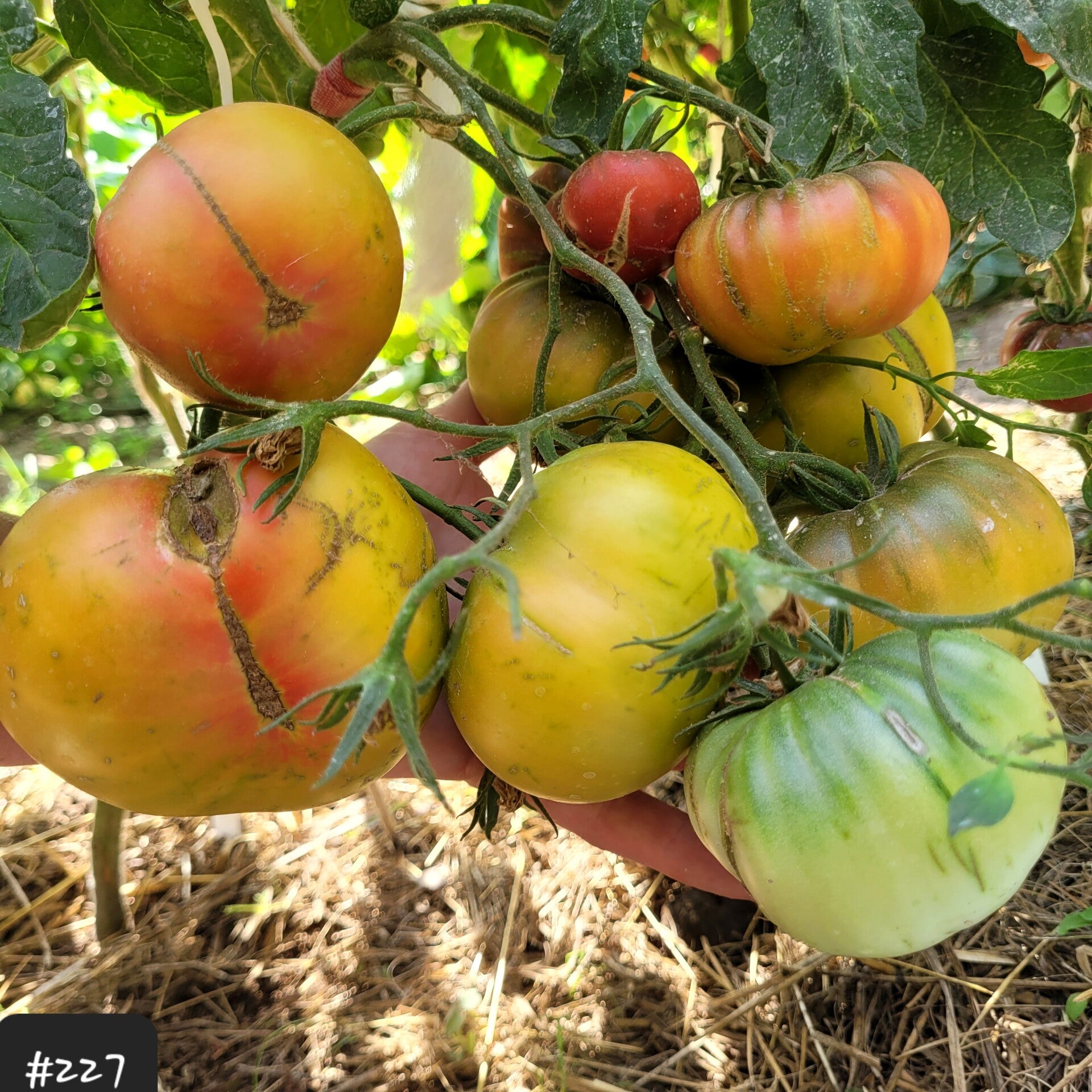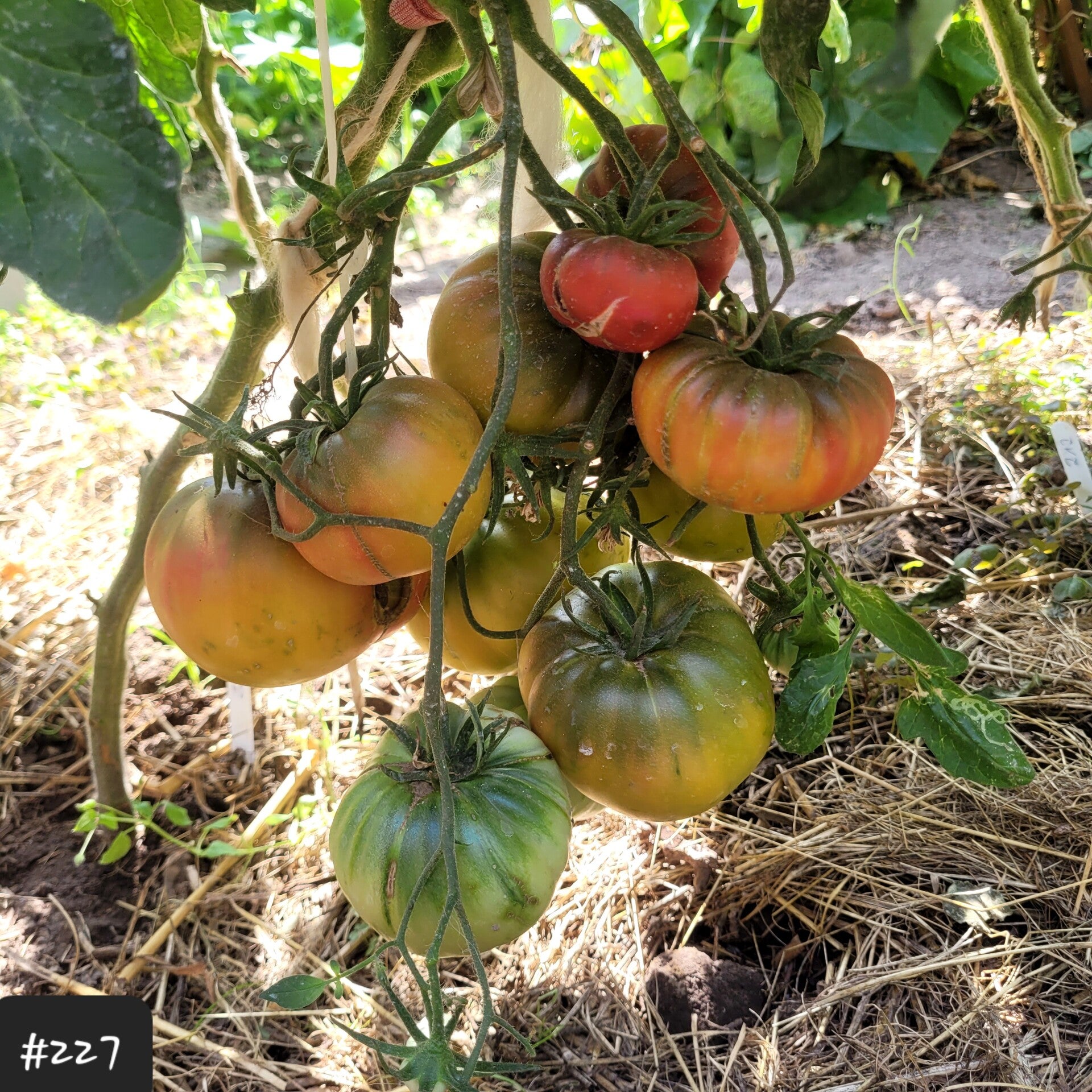 Die Früchte wachsen an einer mittelhohen sehr robusten Pflanze. Diese bleibt kompakt und kann mehrere Triebe vertragen. Sie bekommt teilweise sehr große Büschel mit bis zu 10 schweren Tomaten.