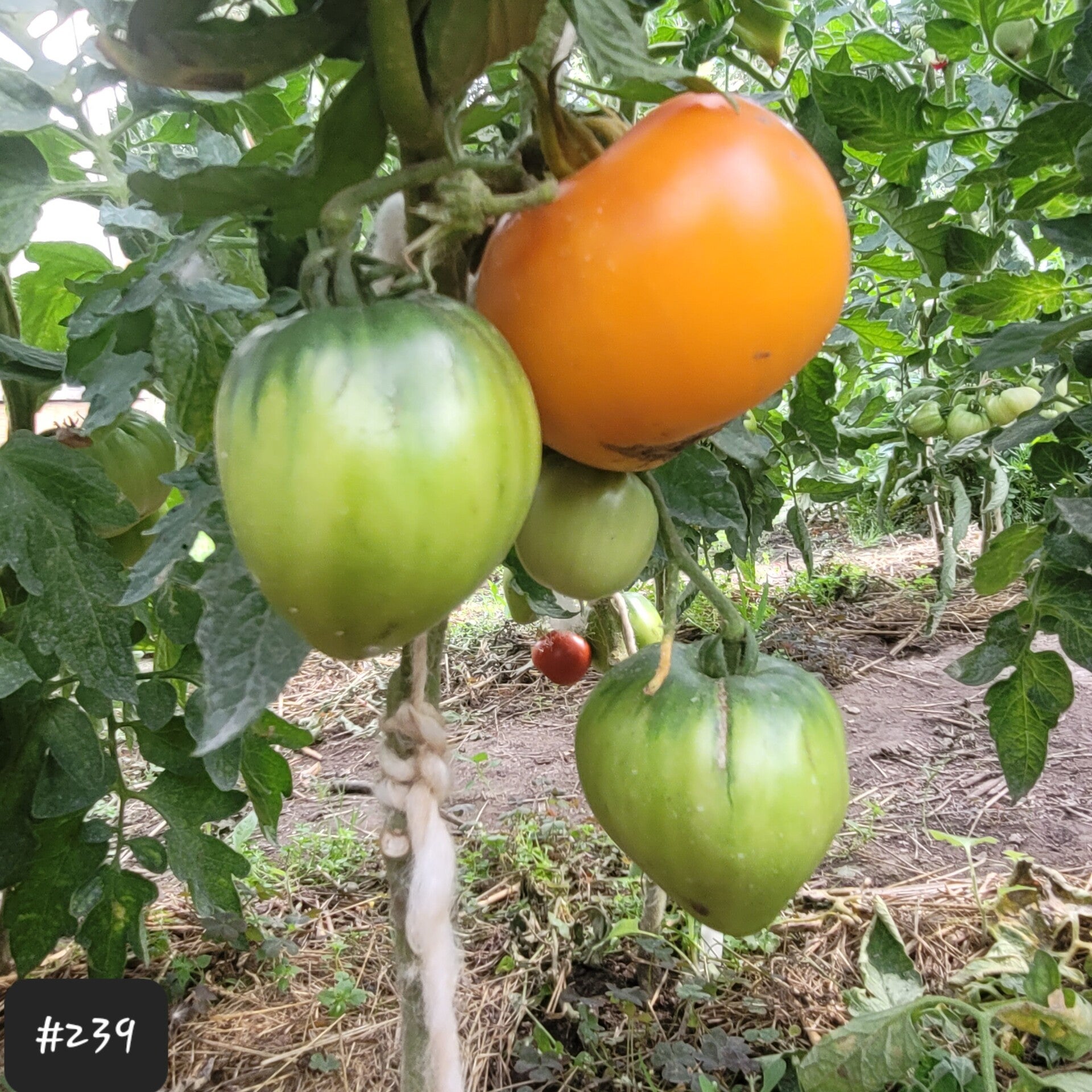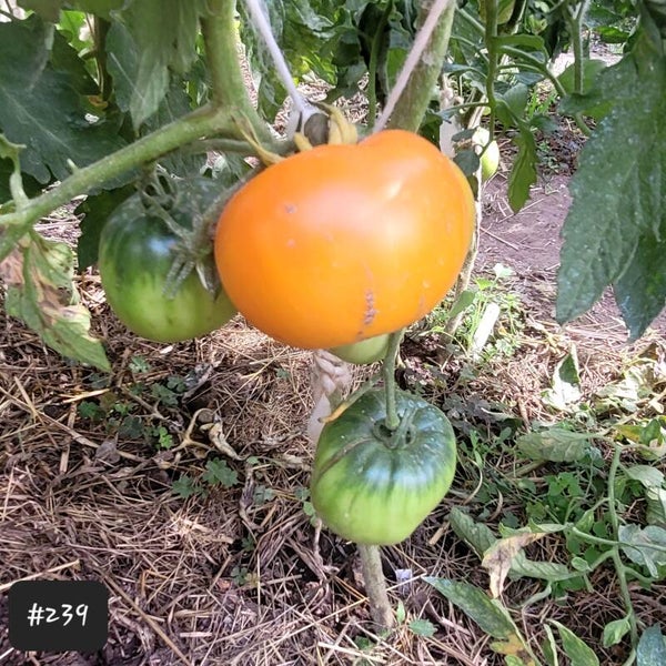 Ein altes Erbstück aus Georgien. Die Tomaten sind meist herzförmig aber öfter auch rundlich. Sie sind orange und haben ein gleichmäßig orangenes Fruchtfleisch. Dieses Fleisch ist fest, dicht und hat sehr wenige Samen und Gallerte.