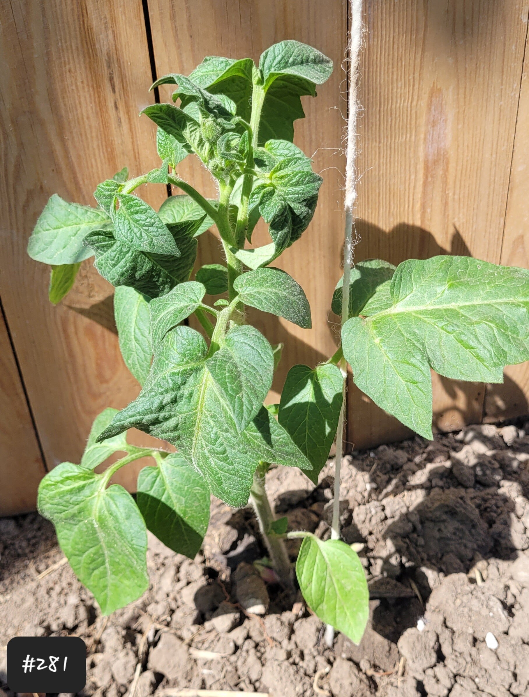 Die Früchte wachsen an einer kraftvollen und starken Pflanze, an jeder Rispe 3-4 Früchte von 200-350 Gramm. Die Pflanze hat Kartoffellaub, ein außergewöhnlicher Blickfang.