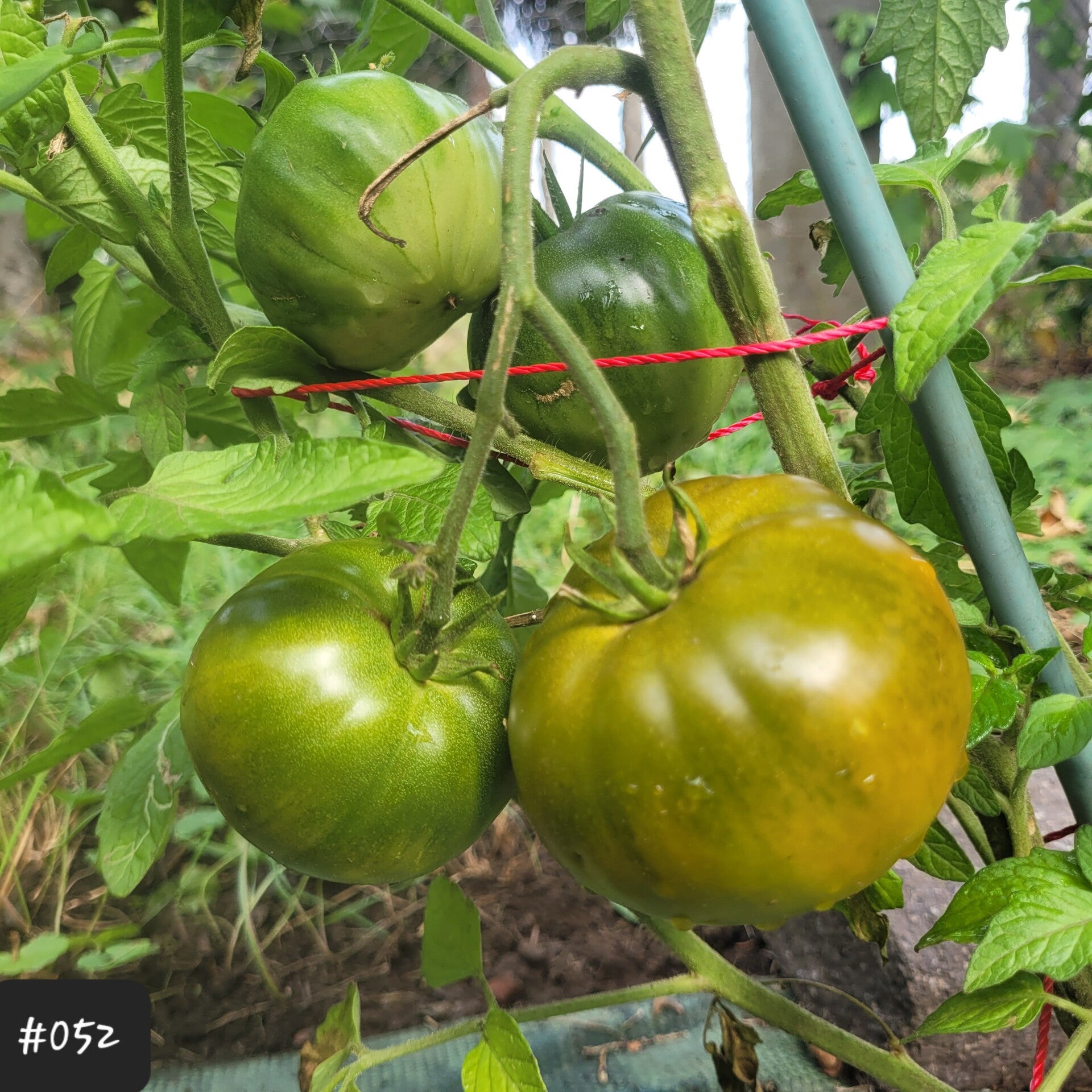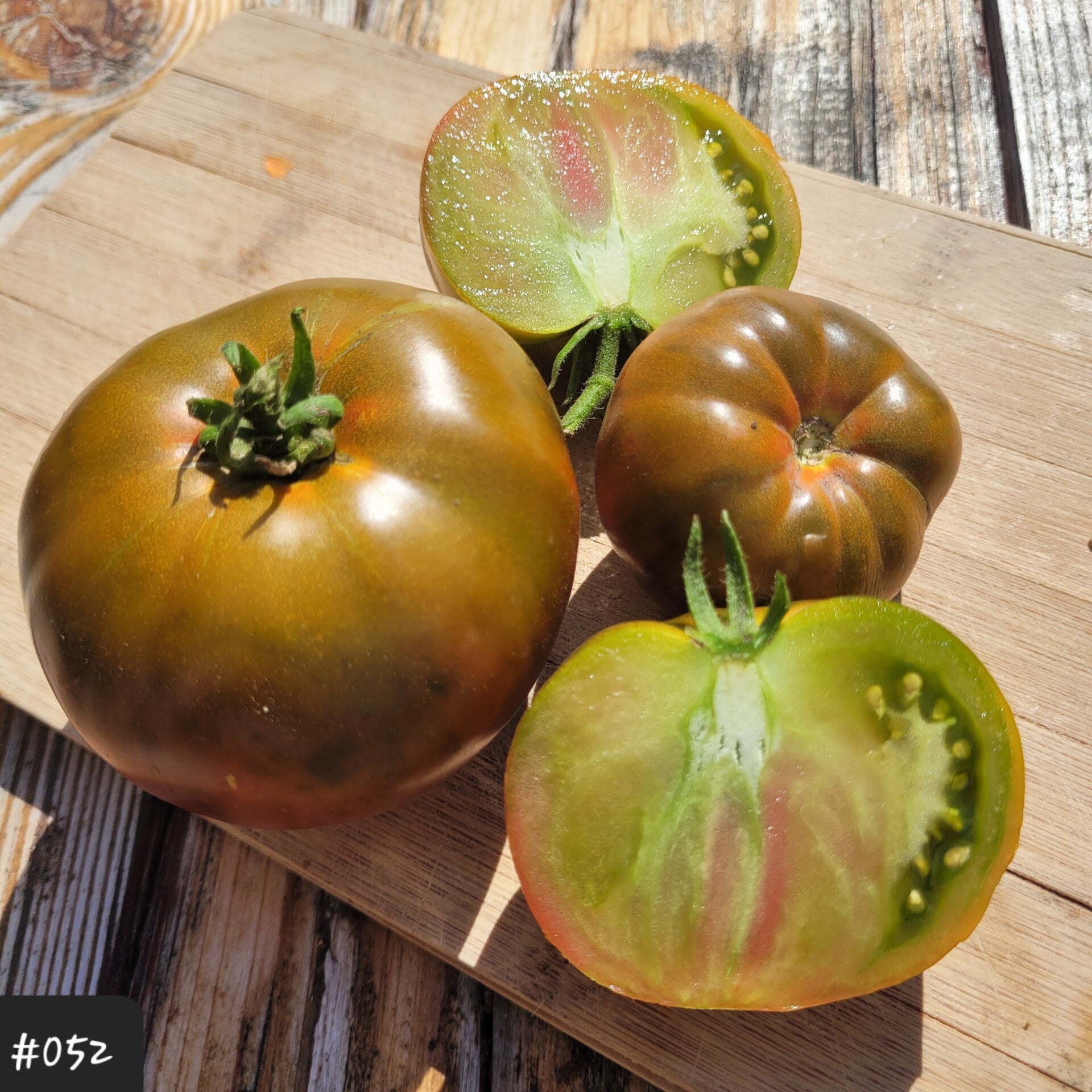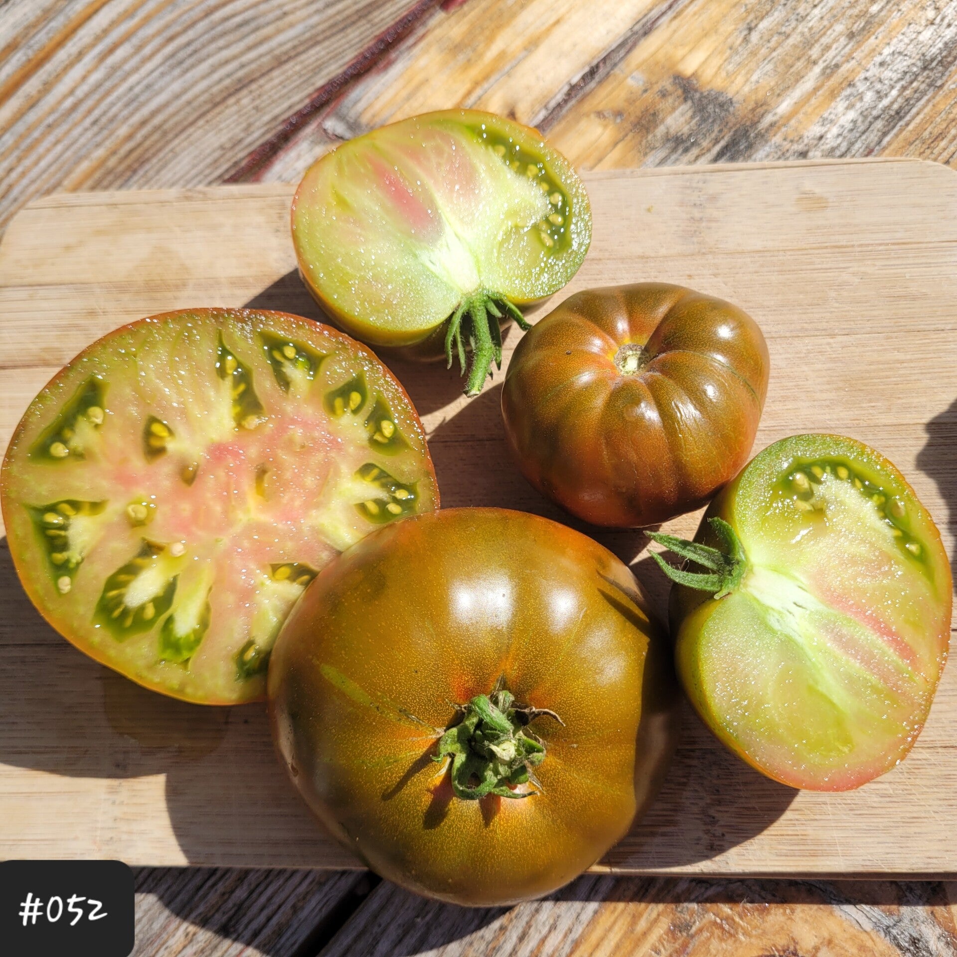 Das fleischige grüne Fruchtfleisch ist dicht, saftig, ockerfarben und mit rosa im Herzen marmoriert. Diese Sorte neigt nicht zum Platzen. Sie wächst an einer hohen Pflanze an eher zarten Trieben in Clustern von 2-5 Früchten.