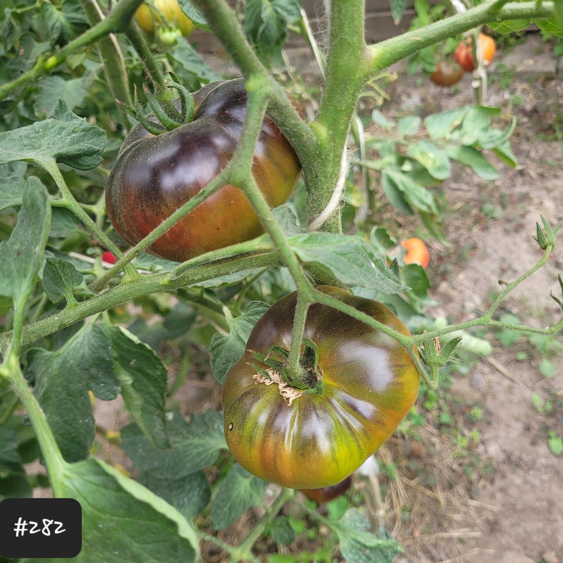 Die großen Früchte wachsen an eine hohen Pflanze in Clustern zu 2-5 Früchten. Die Pflanze hat reguläres Laub, wächst indeterminiert und ist widerstandsfähig und freilandtauglich.