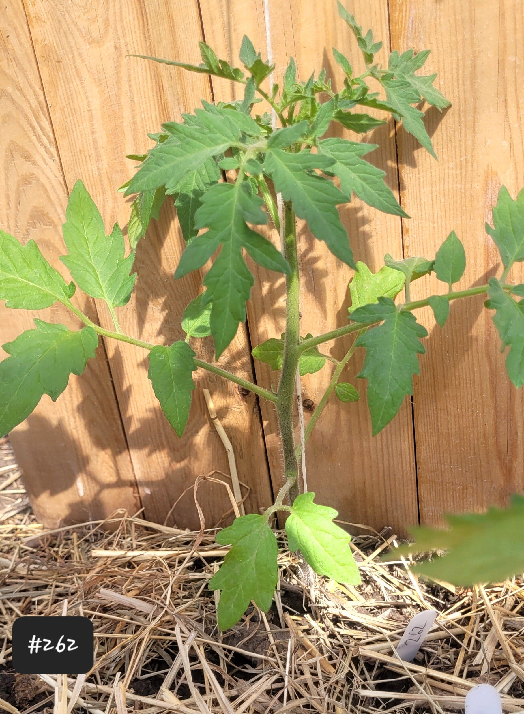 Die Früchte wachsen an einer kräftigen hohen Pflanze mit starkem Tomatenlaub.