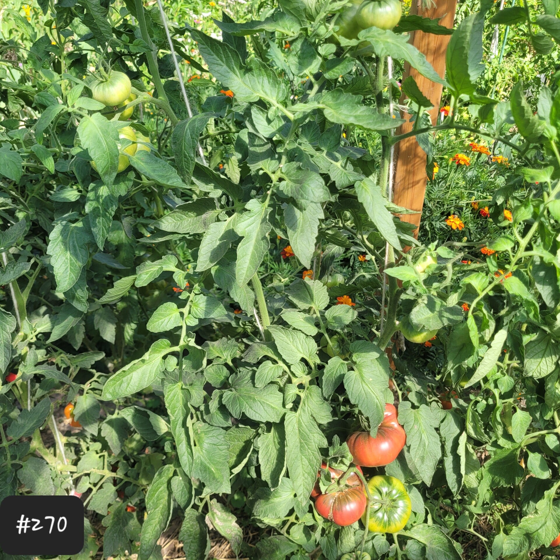 Die Früchte wachsen an einer kräftigen Pflanze, die bei mir 2-triebig ca. 160cm hoch wurde. Sie wächst indeterminiert, hat robustes reguläres Tomatenlaub und an ihr bilden sich viele Cluster zu je 2-5 Tomaten.