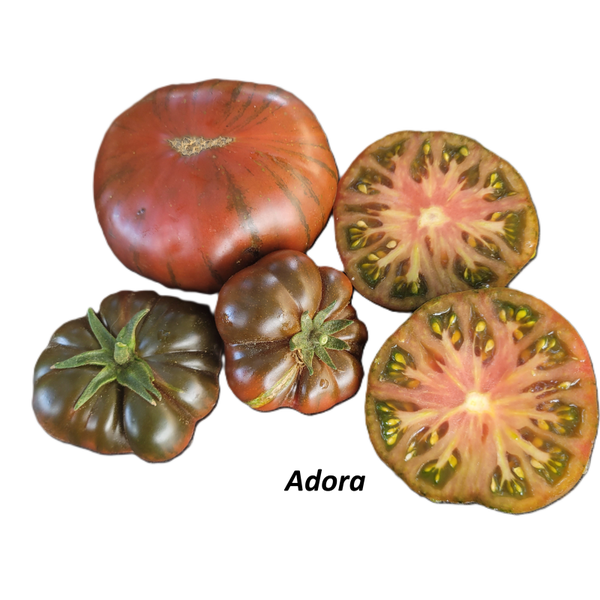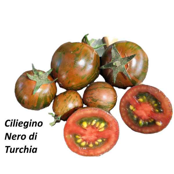 In diesem Set befinden sich 8 Sorten dunkle Tomaten. Sie sind z.B. braun, rotbraun oder dunkelviolett und teilweise bunt gestreift.